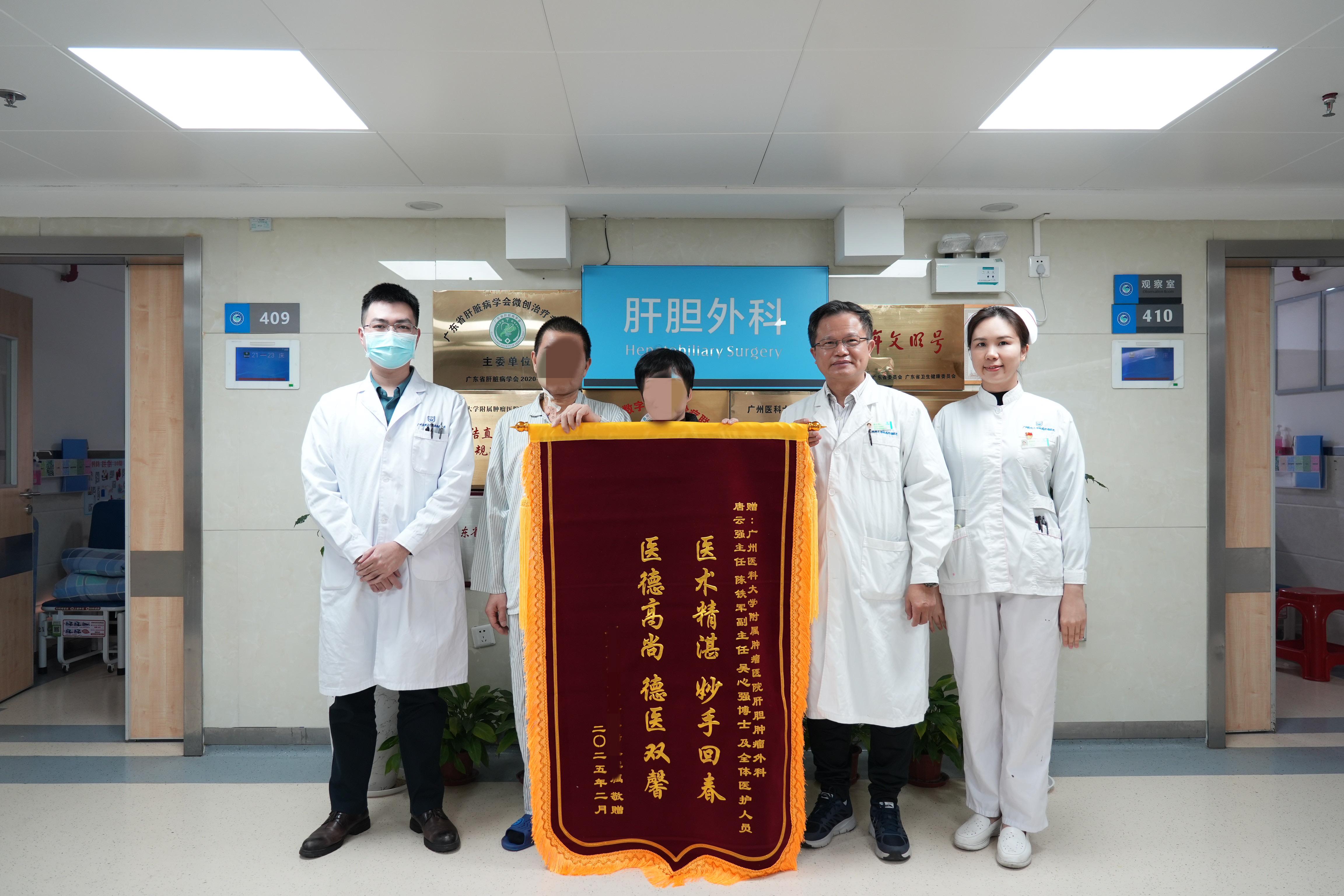 谢先生因长期工作繁忙,偶尔感到腰酸背痛,并未引起重视。直到春节期间,他因为腹部剧烈疼痛,到当地医院就诊,CT结果显示其肝脏内有巨型肿瘤。后来,谢先生来到广医肿瘤医院寻求手术治疗。