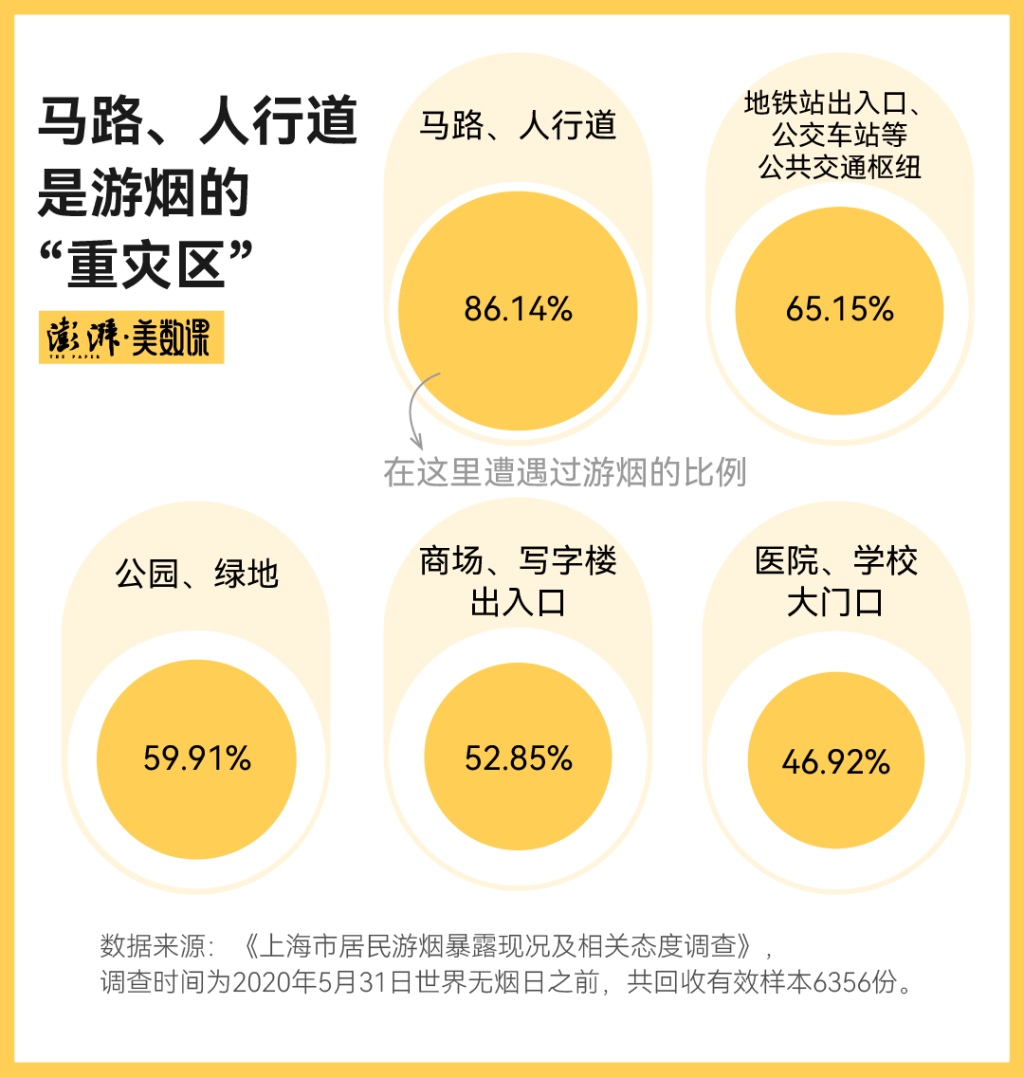 需要注意的是,在全国范围内,上海市的“游烟”暴露状况很可能不是最严重的,甚至是相对情况比较好的。不少城市或地区的“游烟”暴露情况更加糟糕。