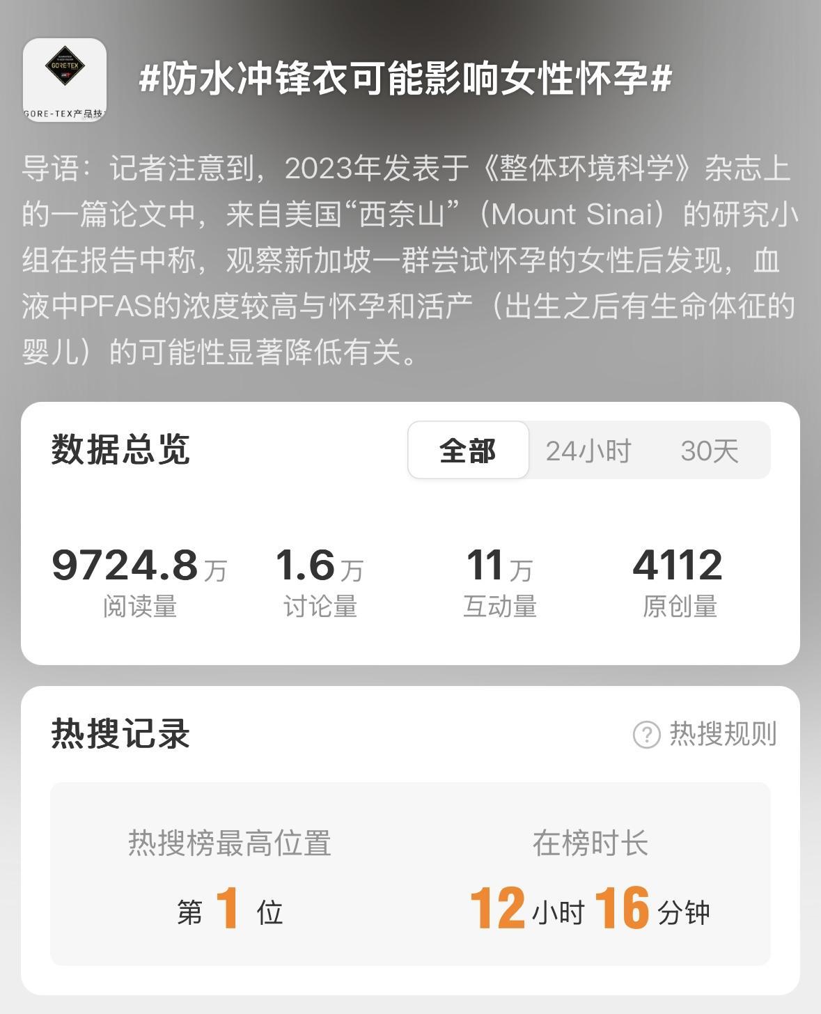 此外,冲锋衣作为外套,一般不会直接贴身穿着,大部分时间与皮肤的接触面积有限,进一步减少了PFAS通过皮肤渗透的可能性。