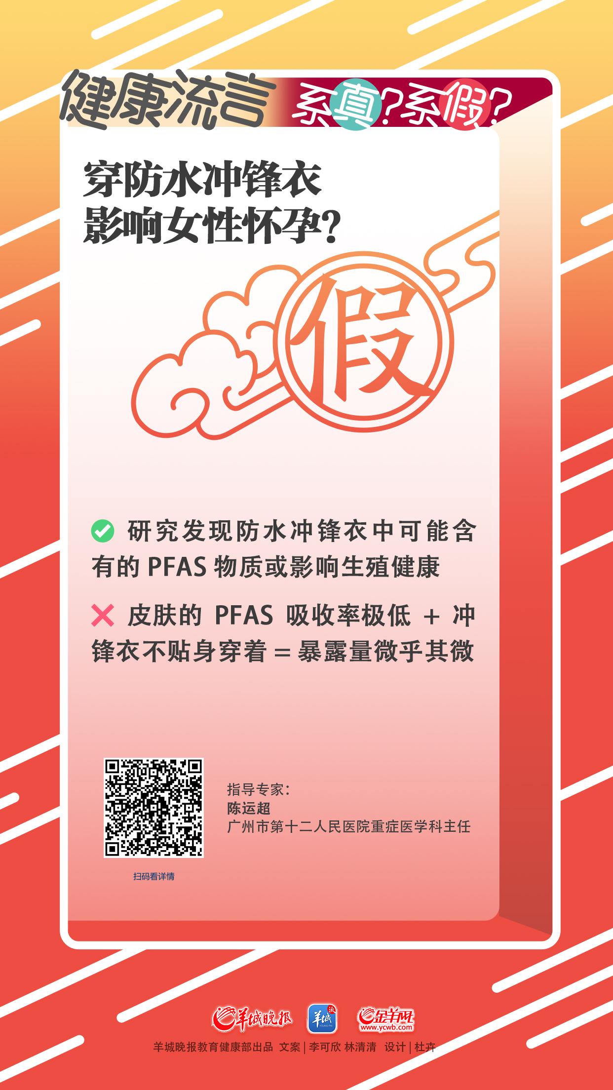 近日,社交媒体上流传着“穿防水冲锋衣可能影响女性怀孕”的说法,引发公众关注。冲锋衣的防水性能主要依赖于含氟聚合物涂层,其中可能含有全氟烷基和多氟烷基物质(PFAS)。这一类化学物质被研究发现可能影响生殖健康,但穿冲锋衣是否真的会对人体生育能力造成影响?记者就此采访了广州市第十二人民医院重症医学科主任陈运超表示,强调“穿冲锋衣影响女性怀孕”的说法过于夸张,公众不必太过担忧。
