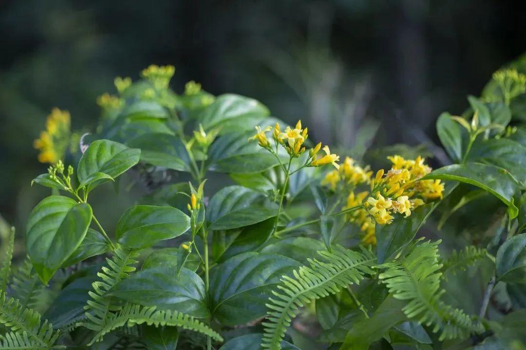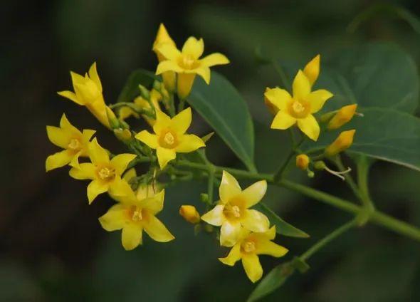 断肠草的花蕾和花都是黄色,叶片两面手感光滑,像有一层蜡;