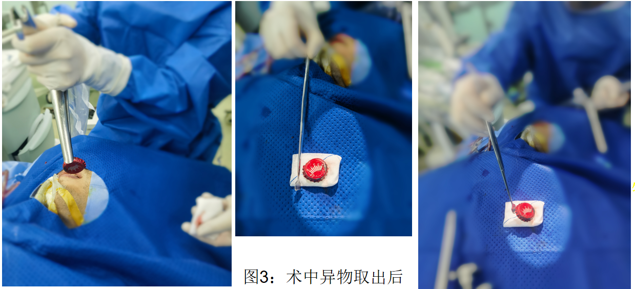 手术中,医生先用等离子刀在喉镜下切开包裹异物的组织,却遭遇更大难题:瓶盖如吸盘般紧贴下咽壁,常规器械无法夹取。“我们就像在操作微型‘排雷’,必须精准松解每个卡点。”蔡谦教授团队改用显微拉钩,经过半小时精细操作,终于将被肉芽肿包围的瓶盖完整取出。