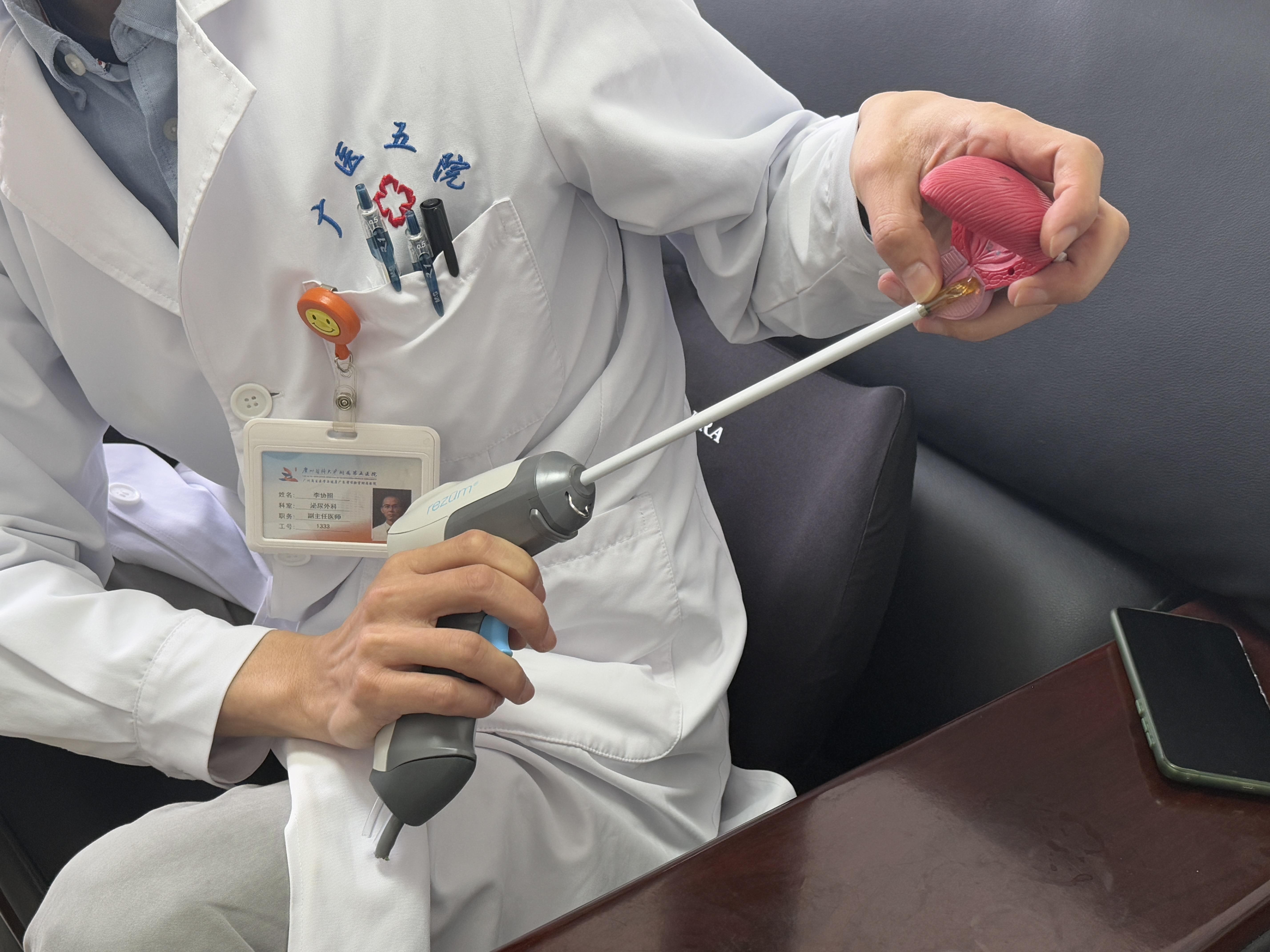 “前列腺热蒸汽消融术就是在器官上打针,在组织上喷洒热蒸汽,让它自己慢慢吸收,整个过程没有大创伤。”广医五院泌尿副主任医师李协照解释,手术将在前列腺深处插入一根特制针头,向增生腺体喷洒约103℃无菌水蒸气,使异常组织受热后自然萎缩,从而解除尿道压迫。整个过程无须切割,出血风险极低,单次治疗仅需5-10分钟。