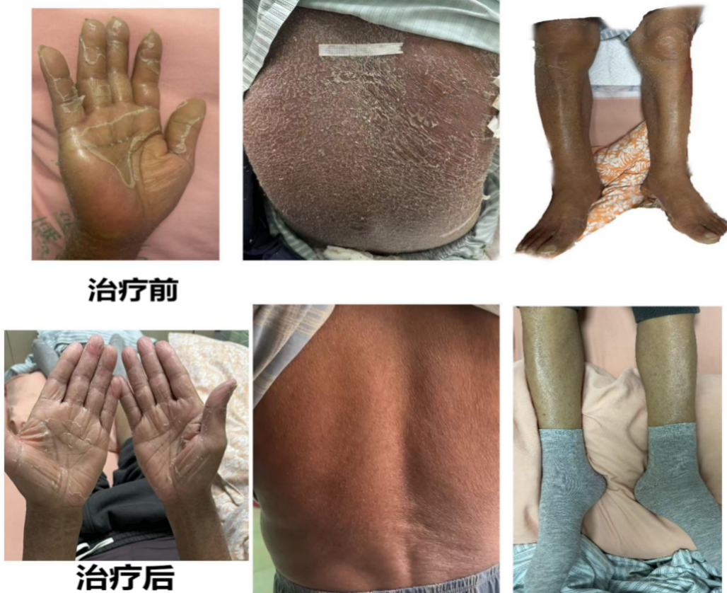 2024年,唐先生因黄疸、高热就医,随后被确诊为“肝门部胆管癌合并复杂胆道感染”。更棘手的是,他在治疗过程中出现严重的药物超敏反应综合征(DIHS),全身皮肤大面积剥脱,并伴有重度贫血,生命危在旦夕。