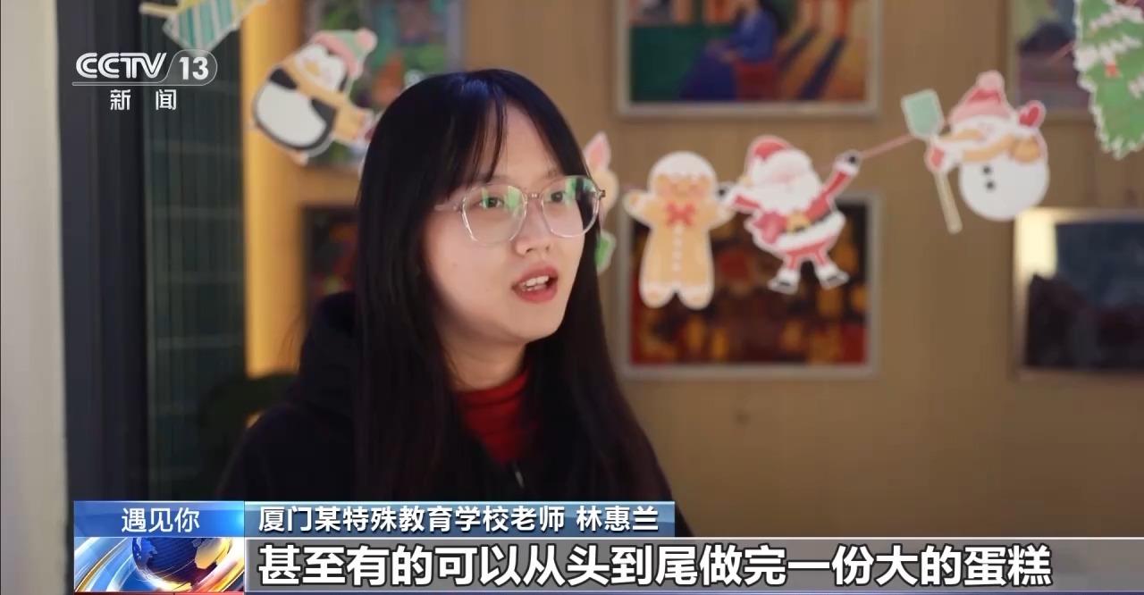 厦门某特殊教育学校老师林惠兰指出:“上课时有的孩子会讲说‘我不敢试,我不会做’。到现在他们可以独立地去完成一杯咖啡,甚至有的可以从头到尾做完一份大的蛋糕。所以我是蛮感动的。”