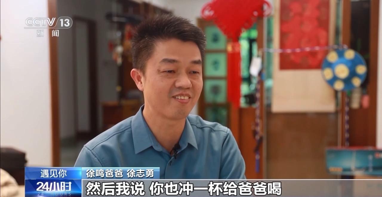 徐鸣爸爸徐志勇说:“那天他们店刚好开业,然后我说,你也冲一杯给爸爸喝,他就拿一杯给我喝了。我喝了真的感觉特别有味道,特别地甜,苦后会有甜的这种感觉。”