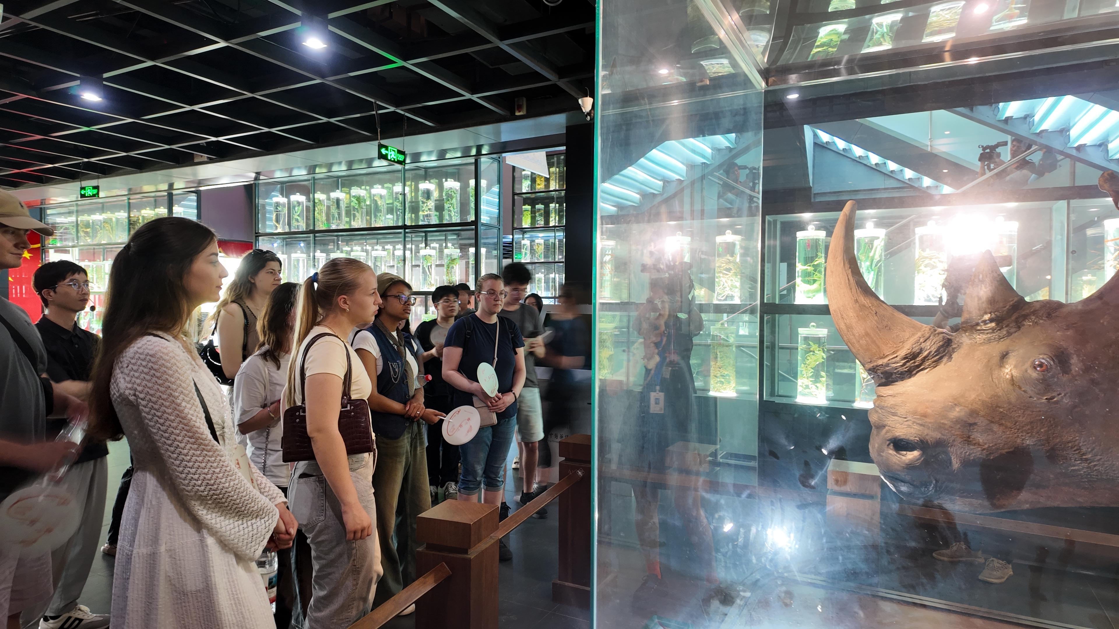 在广东中医药博物馆,学员们踏上了探寻中医药发展历程的奇妙之旅。馆内丰富的展品,从奠定理论基础的《黄帝内经》到详细记载药材的《本草纲目》,从古老的古代制药工具到现代中药标本,伴随着全程英文讲解,向学员们全方位、系统地展示了中医药体系。