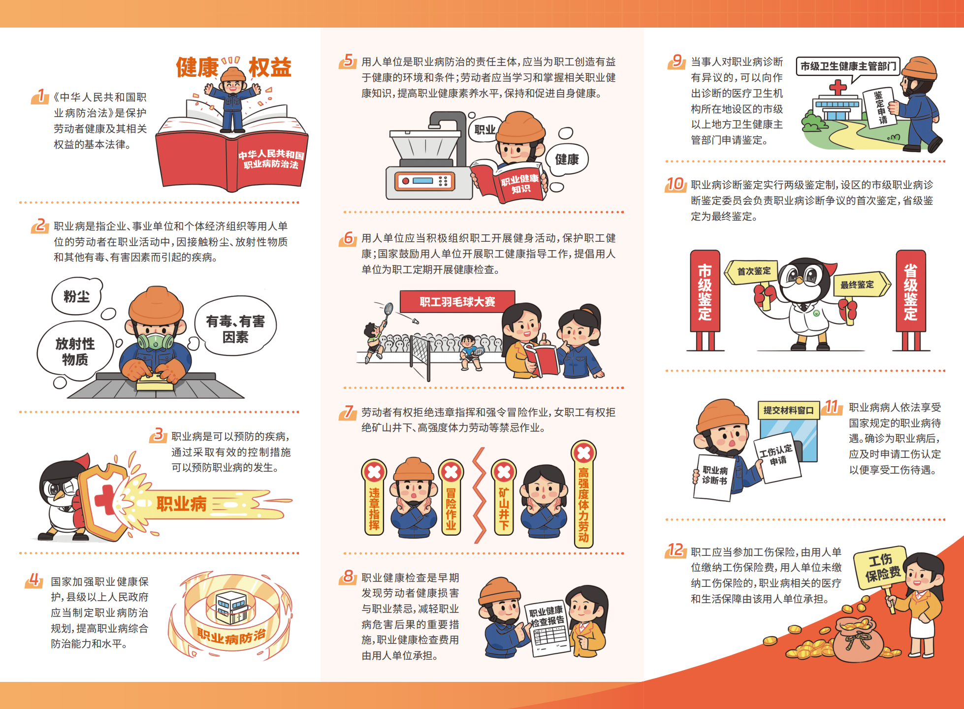 为了保障劳动者的职业健康权益,国家制定了一系列法律法规和政策措施,比如《职业病防治法》,职业病诊断与鉴定制度、职业健康监护制度以及工伤保险制度等。
