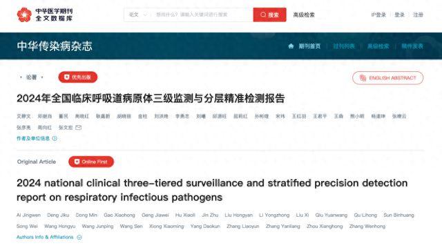 根据国家传染病医学中心(上海)发布的2024年全国临床呼吸道病原体三级监测与分层精准检测报告,记者注意到,2024年全年,三级临床病原监测系统未发现新发呼吸道病原体。专家表示,随着检测体系的不断完善,若能形成领域内规范共识,则可在门急诊、发热门诊、病房等临床就诊场景中实施。