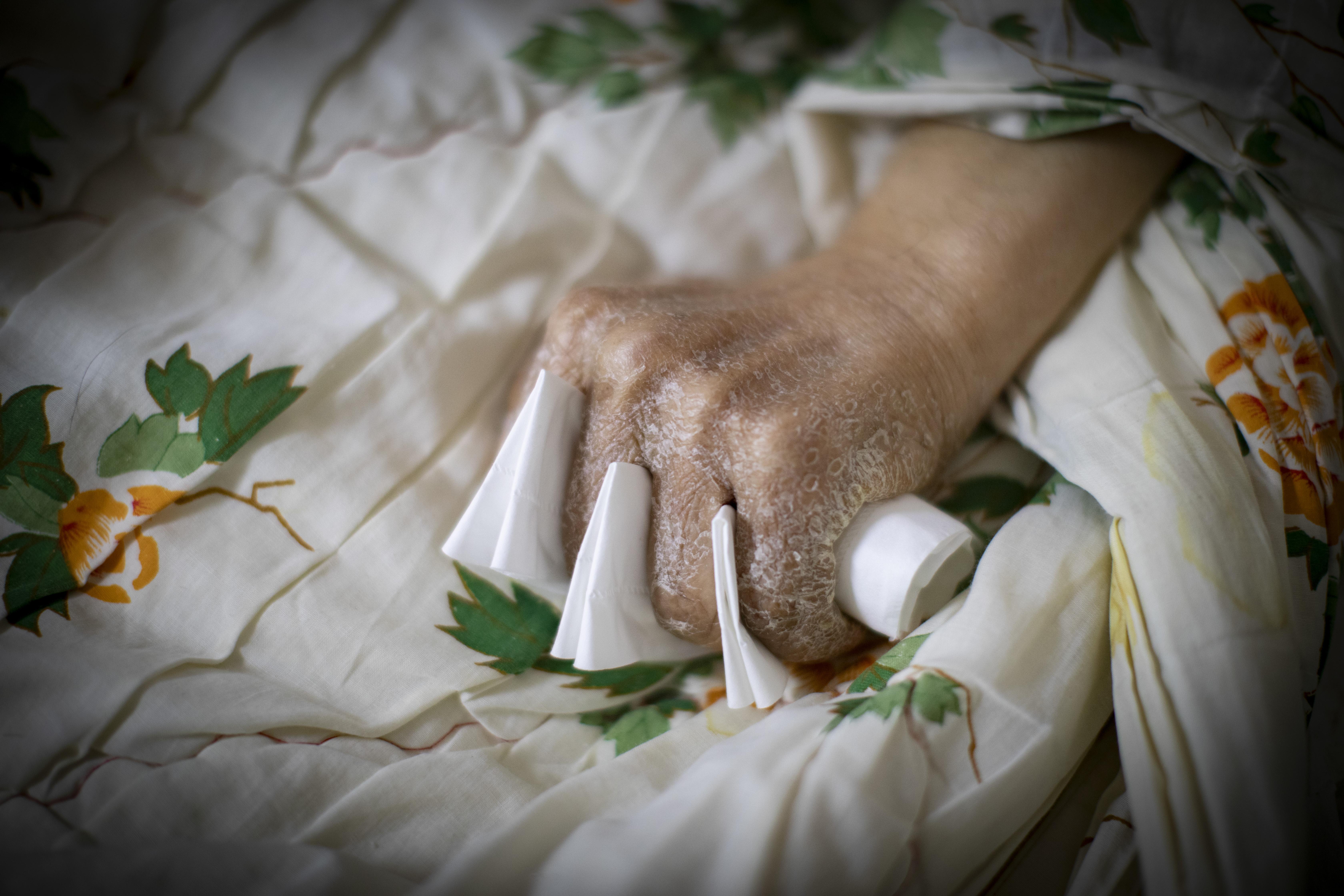 最常见的转折点往往是一次摔倒或是呛咳。走路、吃饭、喝水这些最日常最普通的行为恰恰是最大的风险。老人的骨骼像枯枝一样疏松、脆弱,久不活动导致肌肉量肉眼可见地减少,“大腿像胳膊那么细,胳膊像拐杖那么细”,一跤摔下去,能够使一个刚刚还在下楼活动的老人再也无法出门,或是一个半自理的老人就此困在床上、完全失能,因为无法自主翻身,局部皮肤长时间受压缺血,老人的臀部、大腿、脚跟等部位会溃烂,形成压疮;吃饭喝水也需要格外当心,他们不再像年轻人那样有足够的力气把气管里的杂物咳出去,于是细菌进入肺叶,很多老人就这样感染了肺炎,掉进又一个难关。
