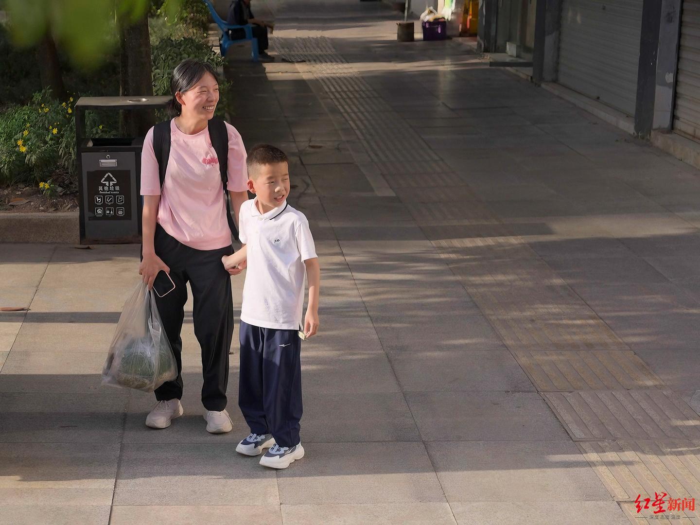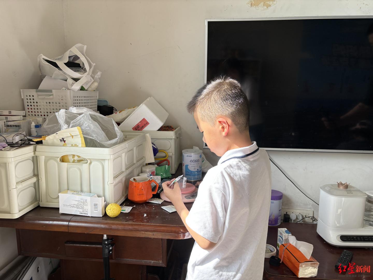 今年8月份,淼淼就要满11岁了,但他瘦小单薄,身高仅有约1.2米。林静接受采访时,淼淼在一旁边玩边听。有时他在房间里,听见外面说话的声音变大,他会探出头来查看妈妈的情况。他注意到林静眼睛发红,问林静是不是哭过。他独自跑到外面玩,回来时买了泡泡糖,屋子里的客人一人发一颗。林静摆摊时,淼淼也是她的摄影师。林静把她带着孩子们摆摊的日常剪成短视频,发布在社交平台上。