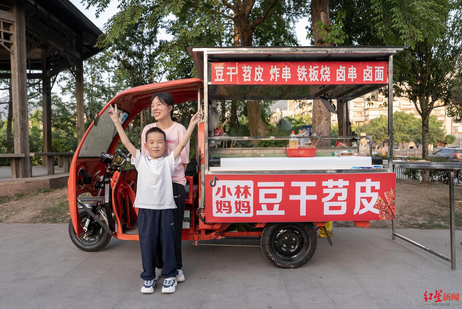 2025年4月,因摆摊救子广受关注的林静,“消失”三个月后再次回到重庆璧山区大河坝公园摆摊。她的苕皮、豆干依旧3元一份,依旧架着手机边做生意边直播。不同的是,小餐车换成了更大的三轮车,在她身边玩耍的儿子淼淼嘴唇有了血色,不再走几步就蹲下歇一会儿。淼淼和其他孩子一起荡秋千,身体向天空发力,越荡越高。