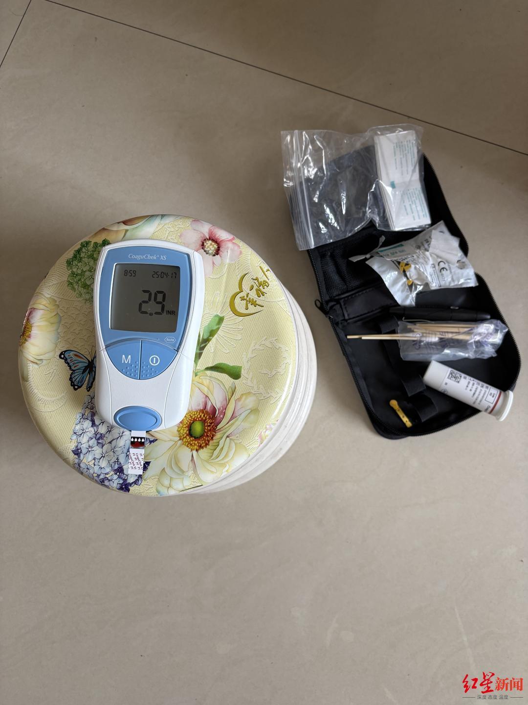 淼淼起床后要做的第一件事是“扎手指”。林静用特制的针扎破淼淼的左手无名指采血,把带着血样的试纸放进INR检测仪。显示屏弹出数值:2.9,太高,意味着淼淼今天服用的华法林钠片要减量。林静第一次为淼淼采血时,由于手法生疏,淼淼痛得大哭起来。如今,两人都已习惯且熟练。