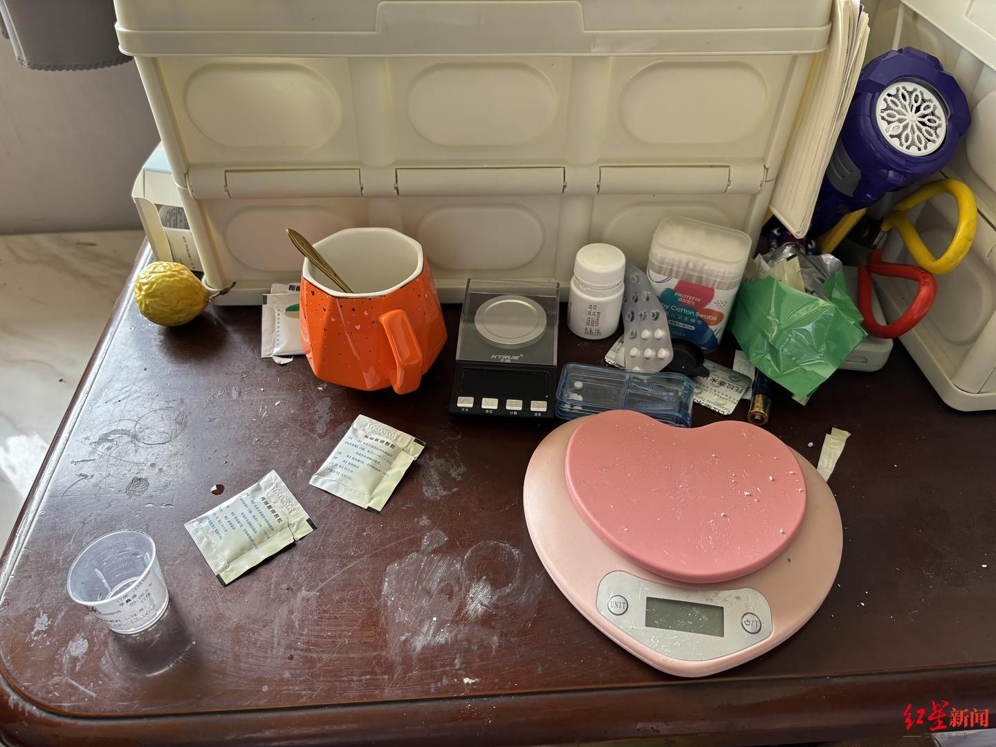 客厅角落的简易货架上摆满林静带货的零食样品。墙上贴着某品牌的背景墙纸,靠窗的位置堆着十多箱样品鞋——昨天,这里被布置成专场直播间,林静播到晚上11点多。客厅另一个角落里放着淼淼的药:枸橼酸钾颗粒、托拉塞米片……林静告诉记者,目前淼淼一个月的药费大约是2000元。