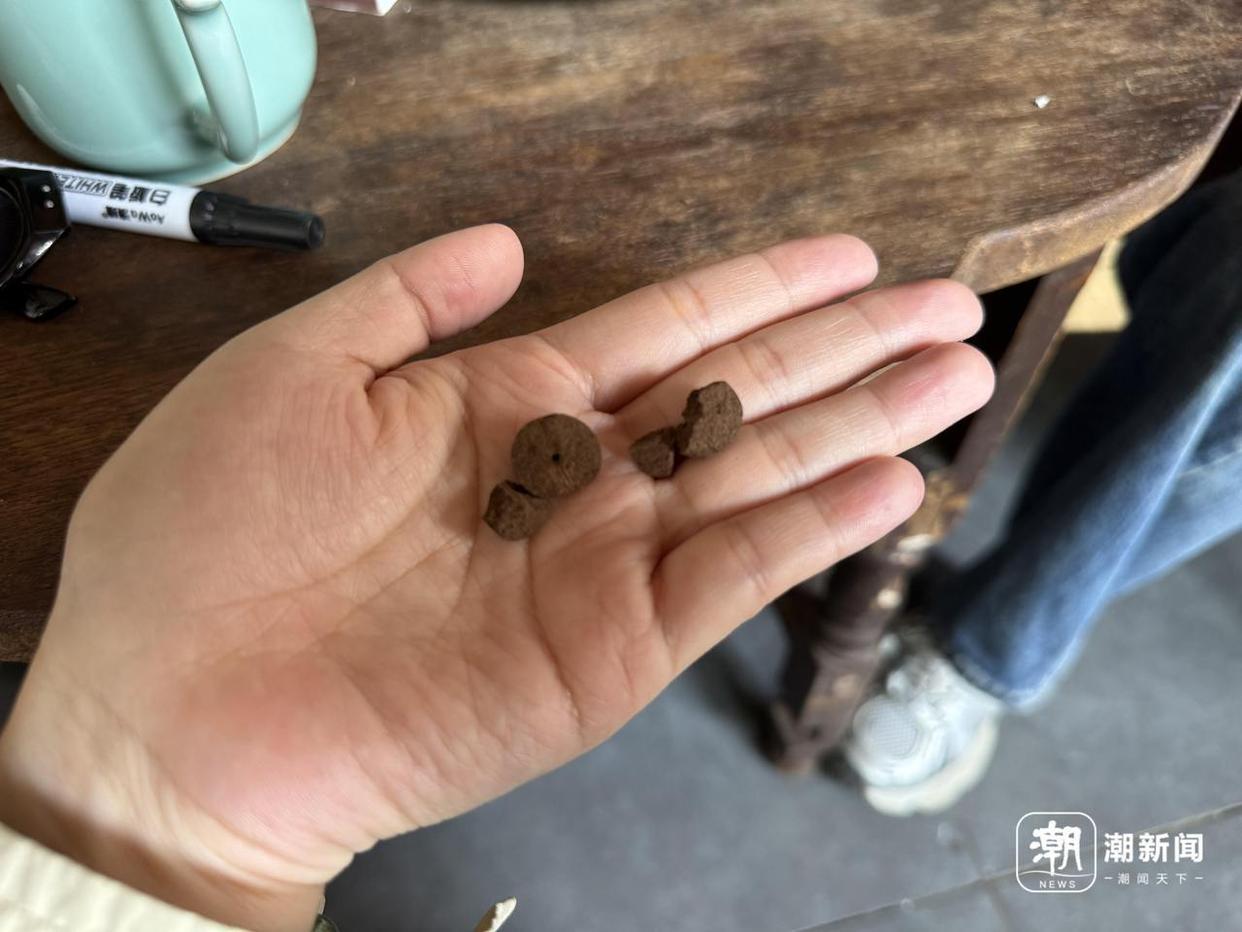 在周科羽的工作室,他向记者展示了自己手工制作和市面上购入的合香珠。从外观来看,手工制作的合香珠颗粒感明显,每颗珠子都会有一圈合模线,手感摸起来有明显肌理感,有明显药香,但不冲鼻;而市场上购入的合香珠外观光滑,某个角度观察有非常亮的光泽,类似石头和塑料的光泽感,手感摸上去偏塑料质感,气味是非常明显的精油香,且香味分布并不均匀。