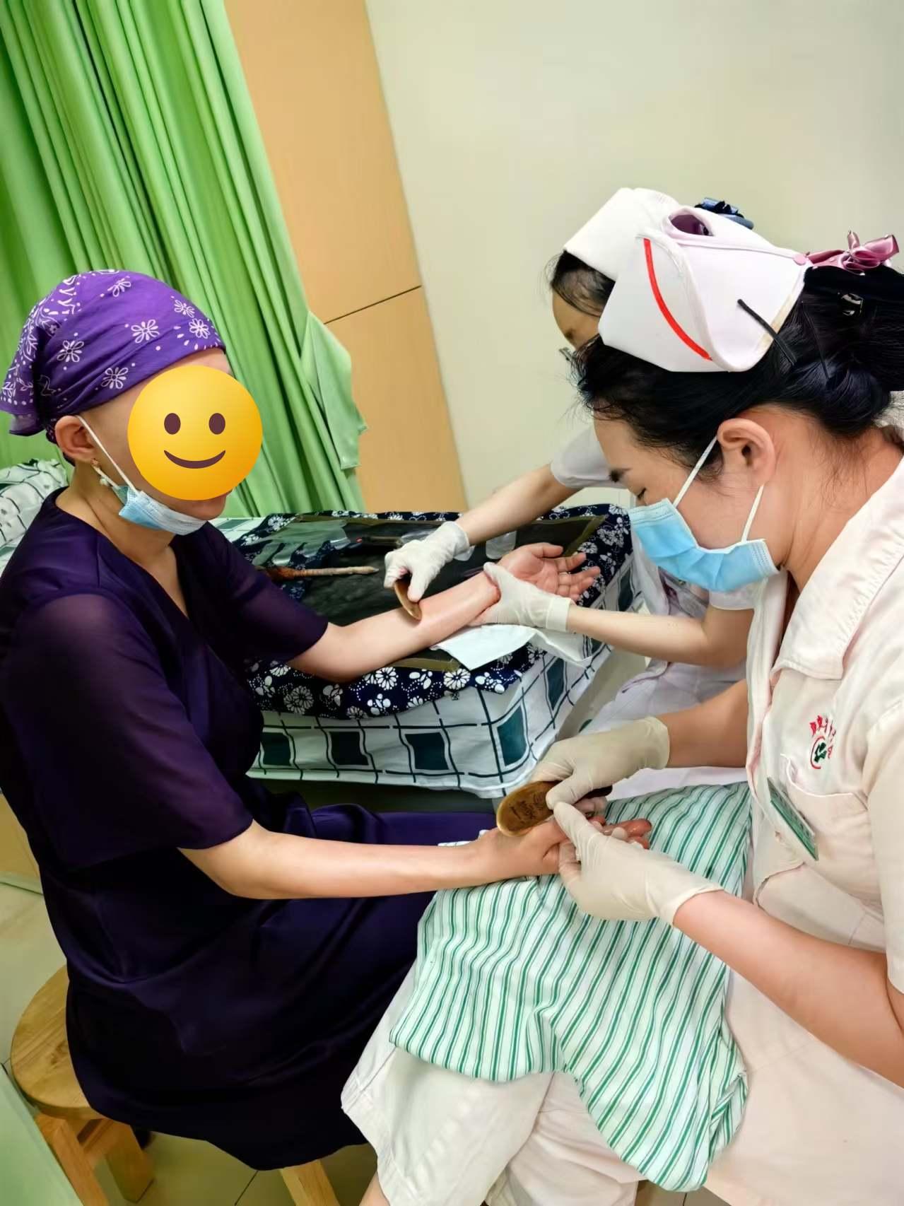 在省中医的中医肿瘤康复护理门诊,肿瘤科护士长叶红为她进行铜砭刮痧为主的中医外治法方案。第7次治疗后,停经半年的她惊喜地发现月经恢复了!“说明治疗后她的气血渐通。”叶红说。第10次治疗后,她可以日行万步,手部灵活度恢复至可正常打字。