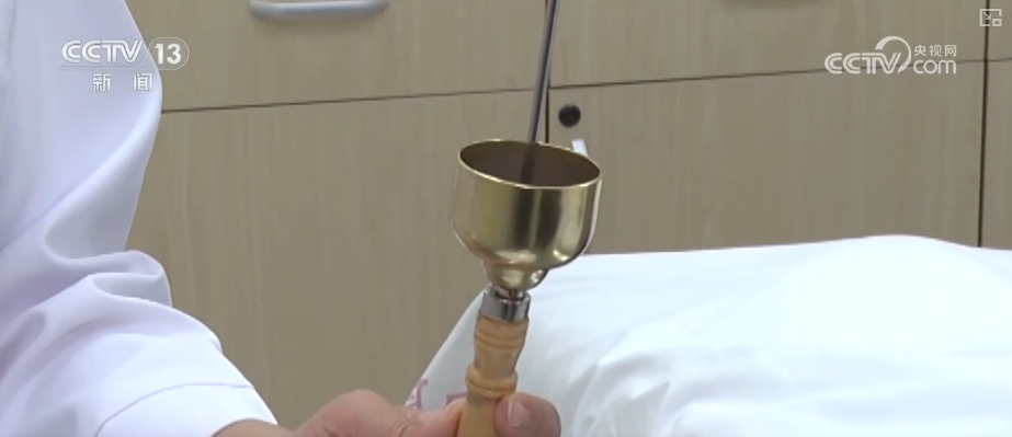 北京中医医院皮肤科护士长胡薇介绍,平时拔火罐的时候都要用这个火棒蘸取一下酒精,点燃之后要在罐里进行旋转,用来去除罐内的负压。每次灭火的时候都要放在一个专用容器里灭火,他们加了一个灭火罩,上面加了一个吸铁石,平时灭火罩会吸得很稳固,所以动的时候不影响火棒的活动,轻轻一抖放下来这个火就灭掉了,提高临床操作效率,而且还比较安全。