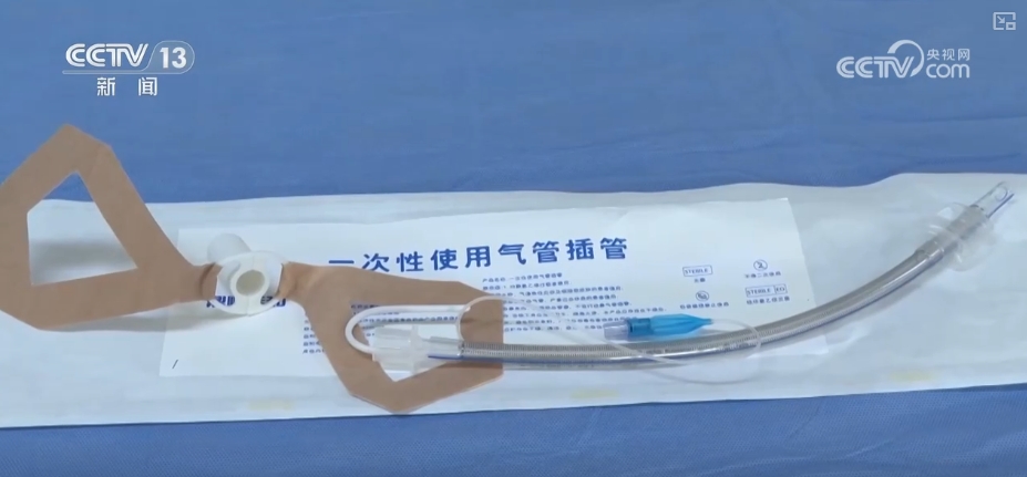 北京大学肿瘤医院麻醉科护士长孔国华介绍,它的外形是一个圆柱体,侧面是蝶形的胶布。患者进行气管插管后,打开患者的口腔,将气管导管固定器放到患者口腔中,先放一侧,它的内面有纳米粘胶,轻轻的力量就可以把两边闭合到一起。这是一个防过敏的蝶形胶布,也防脱、也防咬,患者的上下牙齿只能咬到导管固定器的外面,而不会咬到真正的气管导管,通过这个孔可以对患者进行吸痰。
