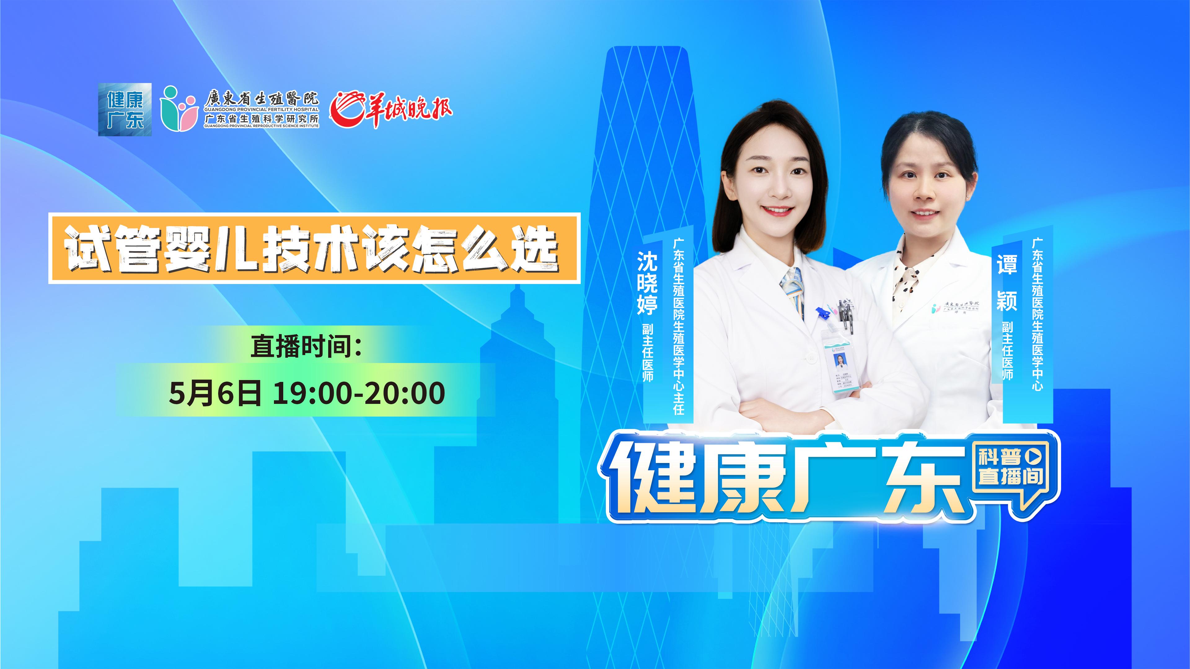 “看健康广东,享快乐健康!”近日,在广东省卫健委的指导下,广东省生殖医院联合羊城晚报推出生殖健康科普系列直播。近日,我们邀请到广东省生殖医院生殖医学中心主任沈晓婷做客直播间,聚焦的话题是“试管婴儿技术‘一代更比一代强’?生殖专家:教你这样选更合适”。让我们一起了解如何选择合适自己的辅助生殖技术顺利怀上健康宝宝。