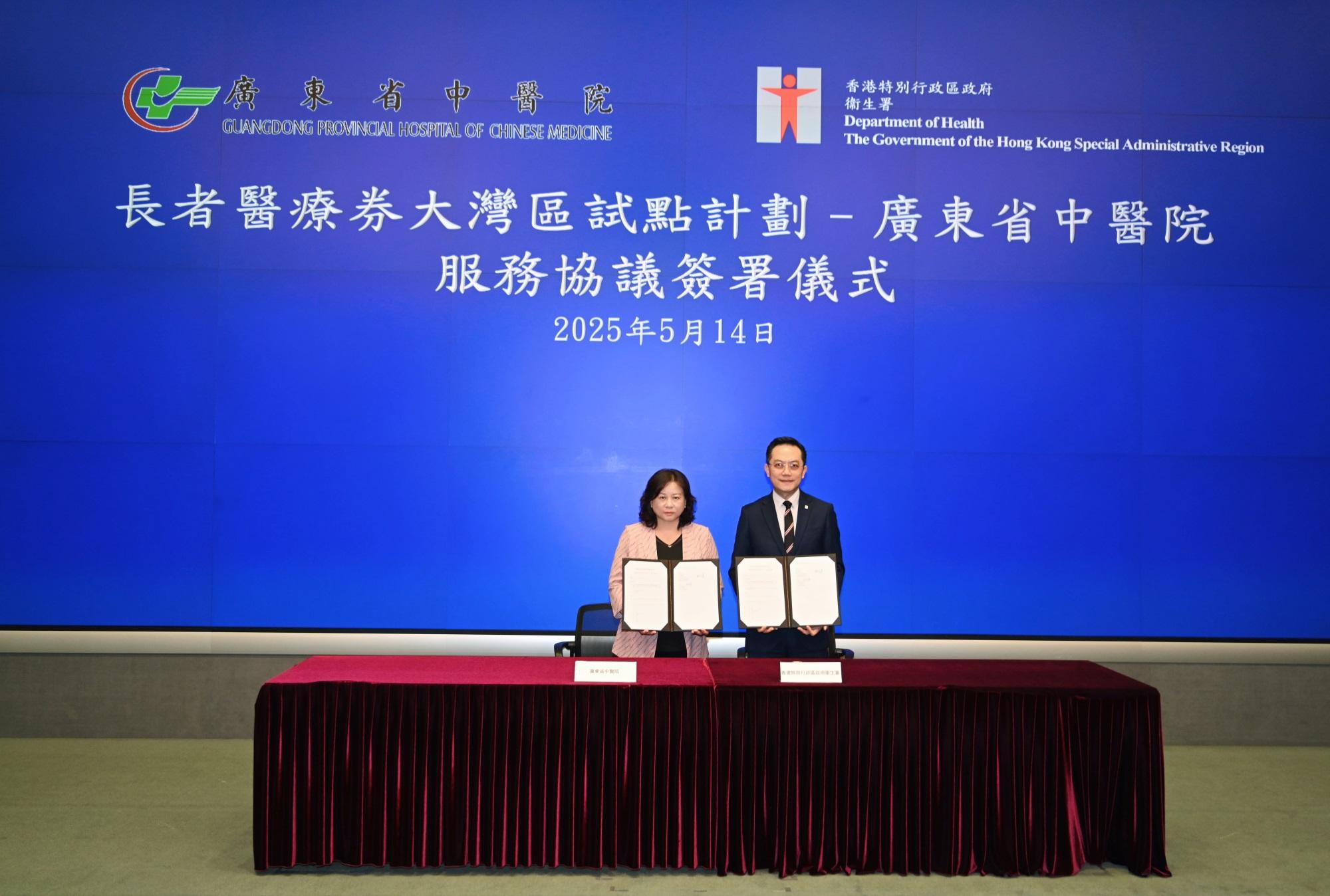 广东省中医院党委书记史俏蓉与香港卫生署署长林文健分别代表双方签约。