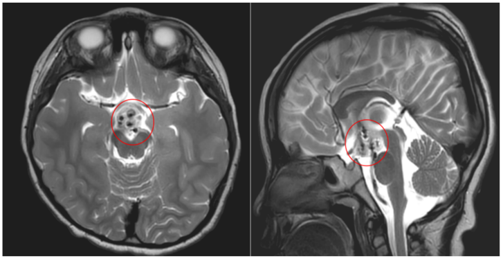 陈俊喜介绍,下丘脑错构瘤虽名为“瘤”,但并不是真正的肿瘤,而是较为少见的先天性脑组织发育异常性病变,好发于幼儿,主要表现为痴笑样癫痫。