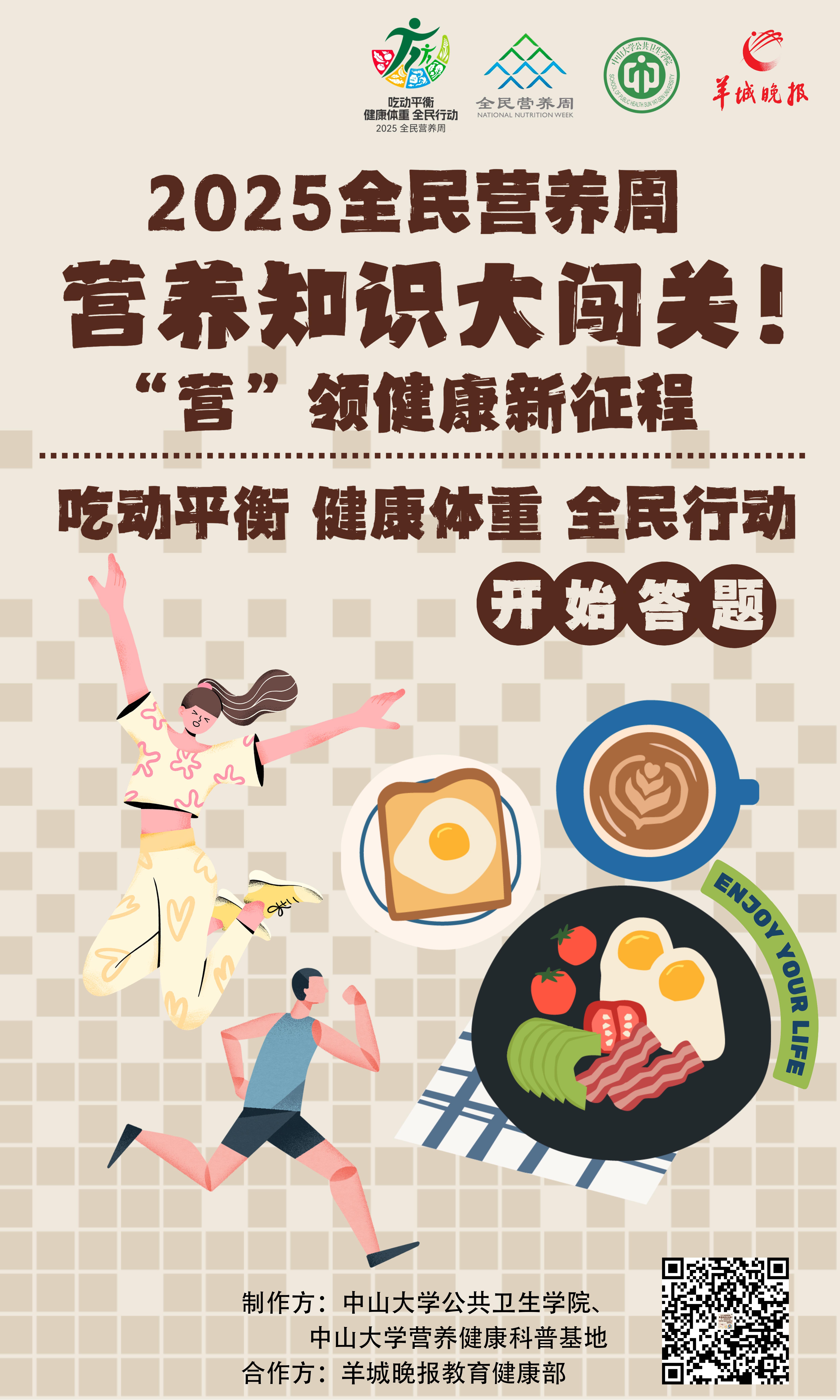 为提升全民营养健康素养,引导公众科学管理体重、建立平衡生活方式,让“能量平衡、科学运动、优化膳食”的健康理念融入日常,羊城晚报教育健康部连续四年联合中山大学公共卫生学院,以及中山大学营养健康科普基地,共同推出《H5丨营养知识大闯关!“营”领健康新征程》。