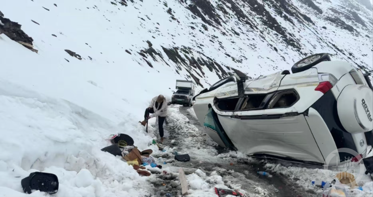 22日上午,自驾博主“小小”告诉记者,自己20日一大早自驾石九线,清晨6时左右在翻越垭口放飞无人机时发现路上有一辆侧翻的越野车。她赶到现场后,发现了四名在寒风中瑟瑟发抖的老年游客,这里距离有手机信号的地方要两小时车程。“我前面已经有另一辆车拉了两人(其中有一名伤员)离开。”