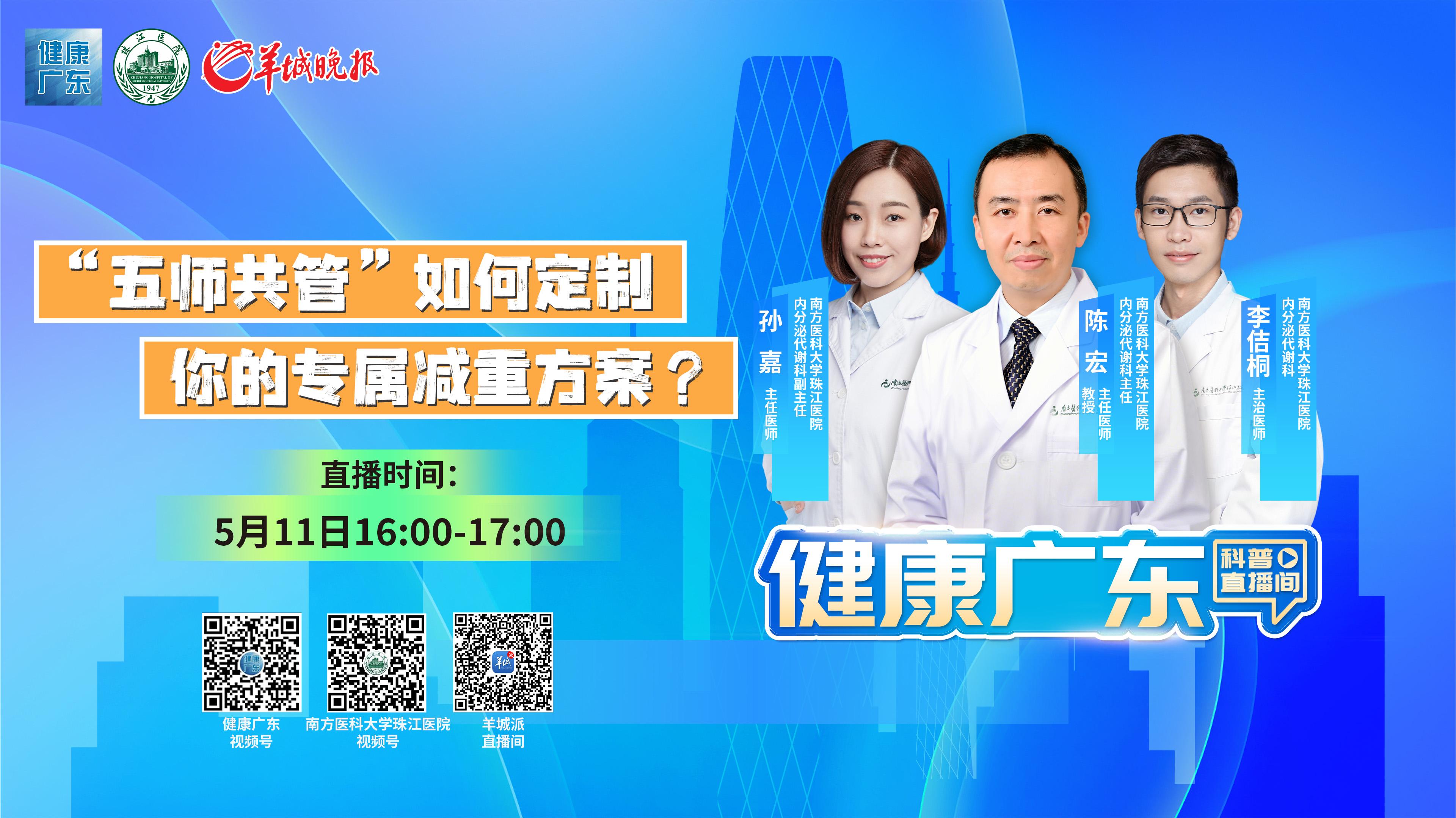 5月11日,我们聚焦的话题是“‘五师共管’如何定制你的专属减重方案”南方医科大学珠江医院内分泌代谢科主任陈宏教授、副主任孙嘉、主治医师李佶桐做客直播间,详细探讨如何科学减重的话题。