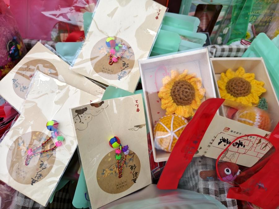 如今的香囊“花样经”十足,款式、香味等都是为了特定的场景设计。例如,毛线编织成橘子与向日葵的挂件,谐音“一举(橘)夺魁(葵)”,特别适合考试季;浦东美术馆的联名款,是一把丝绸制作的团扇,一个小小的磁吸,就将扇子形的香囊变成了车载香氛;还有五色丝线缠绕的复古款、孩子们喜欢的“啪啪圈”,让选购者爱不释手。