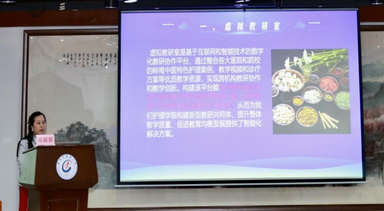 数智技术如何赋能中医护理教育?邓丽丽在现场分享中,以《医学大模型赋能的中医护理元宇宙虚拟教研室建设》为主题,首次披露了教研室建设蓝图:融合AI、VR等技术,打造聚焦岭南中医护理特色的课程群体系与元宇宙交互空间,通过“数字孪生+沉浸式教学”模式,构建“教-学-研-践”一体化生态,推动中医护理教育从“单向输出”向“多维互动”升级。