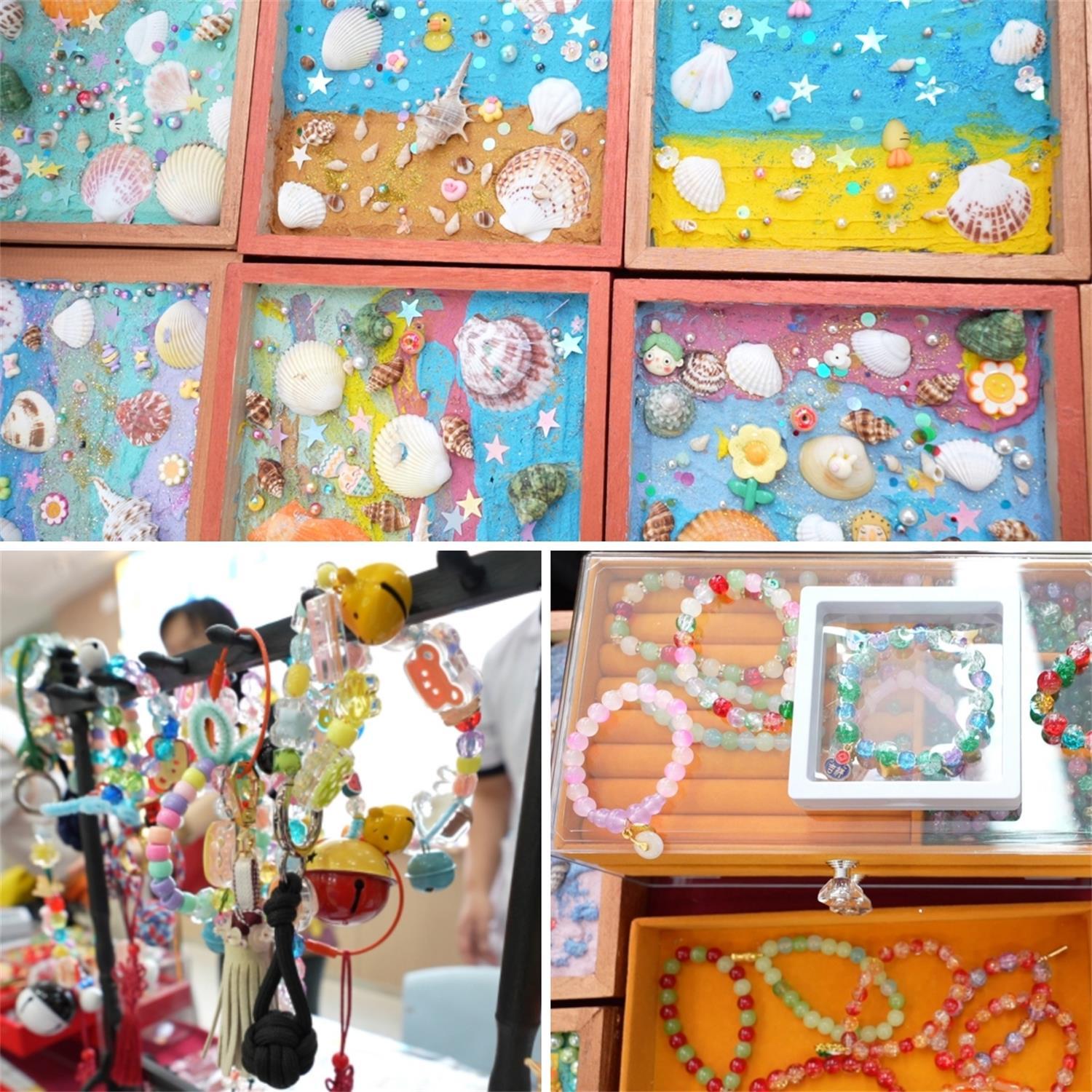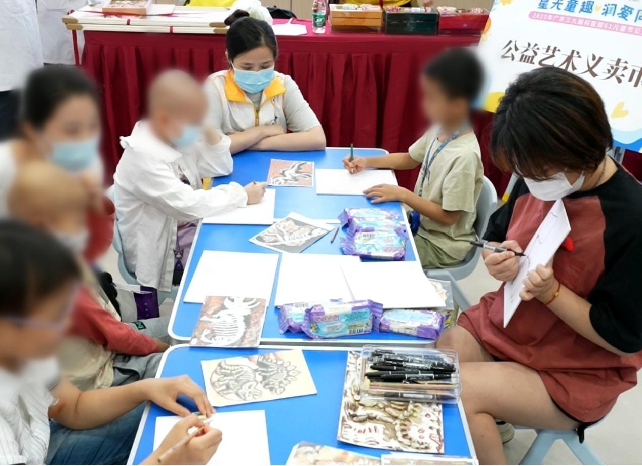 在当天的公益艺术市集上,除了湘湘的国画,还有来自该院肿瘤综合诊疗科十余名患儿在艺术课堂上创作的各式手工作品,一件件陈列整齐的作品,都凝结着孩子们与病魔抗争的勇气。