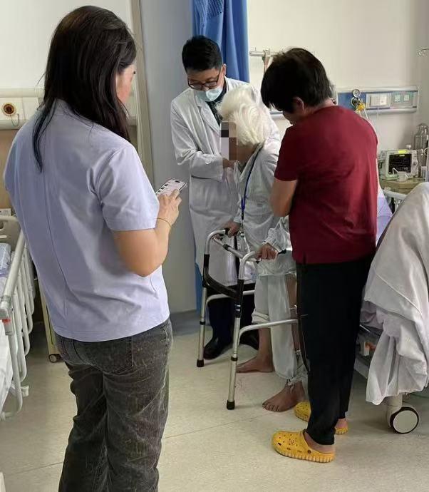 针对患者超高龄的特殊性,做好围手术期并发症的防治、处理和护理是保障手术成功的重要环节。关节科迅速启动多学科协作机制,联合麻醉科、心血管内科、呼吸科、康复科等专家开展会诊,全面评估李婆婆身体状况。通过心脏彩超、肺功能检测优化麻醉方案,尽量缩短手术时间;营养定制高蛋白膳食改善患者体能;康复团队提前介入,指导床上适应性训练及早期下地扶拐站立或行走。