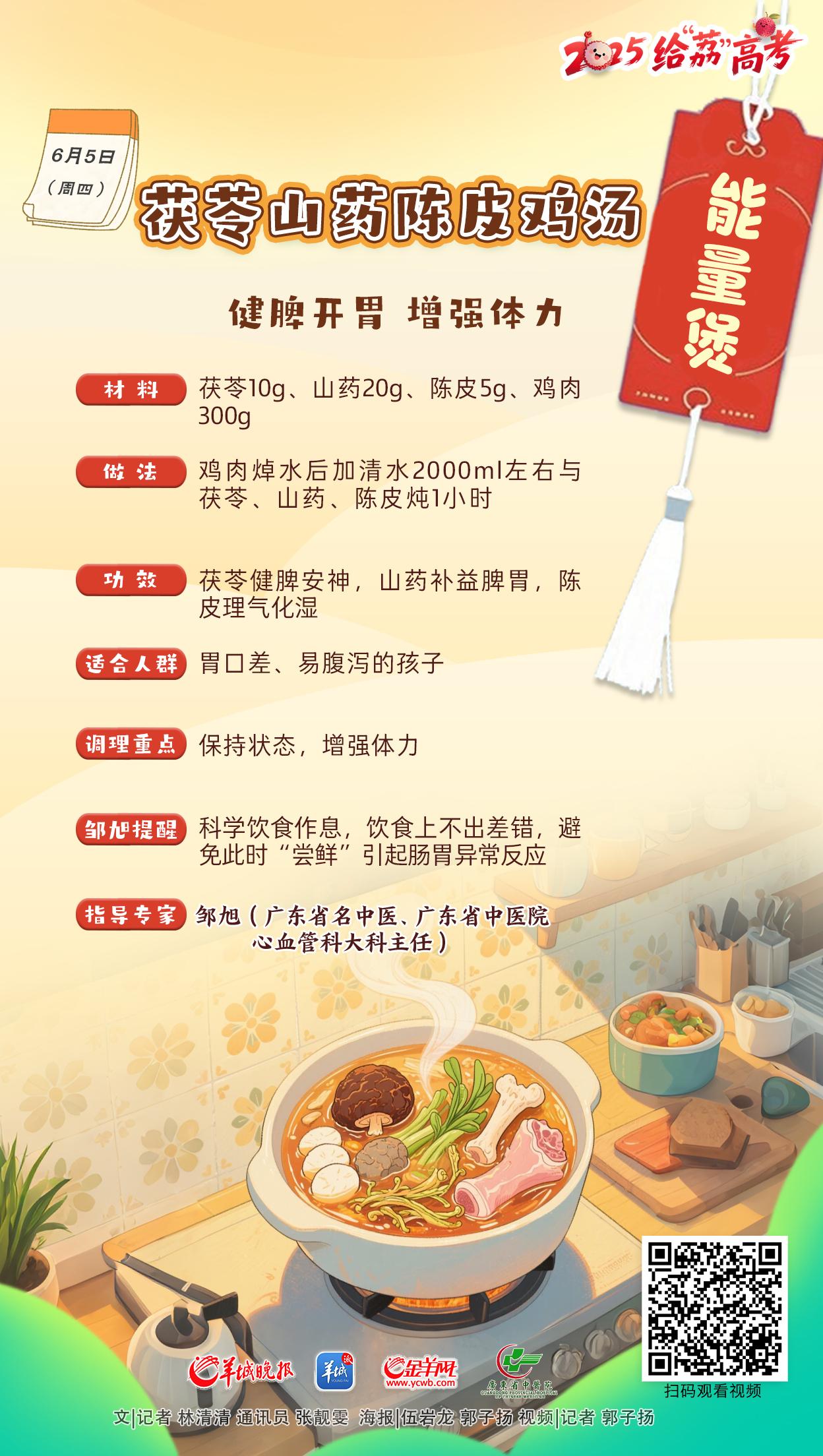 今年高考期间,羊城晚报联合广东省中医院,从6月2日至6月9日,每天推出一个高考“能量煲”养生汤方。