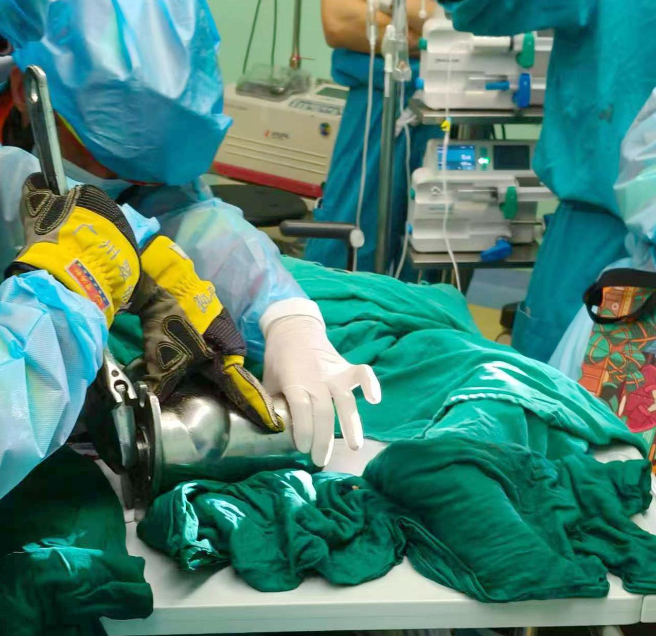 在珠江医院急诊科、创伤骨科、麻醉科手术室等多学科专家团队与消防部门的紧密协作下,经过三个多小时的手术,成功为患者进行了高难度的保肢手术。目前患者生命体征平稳,肢体恢复血运,正在创伤骨科进行后续康复治疗。