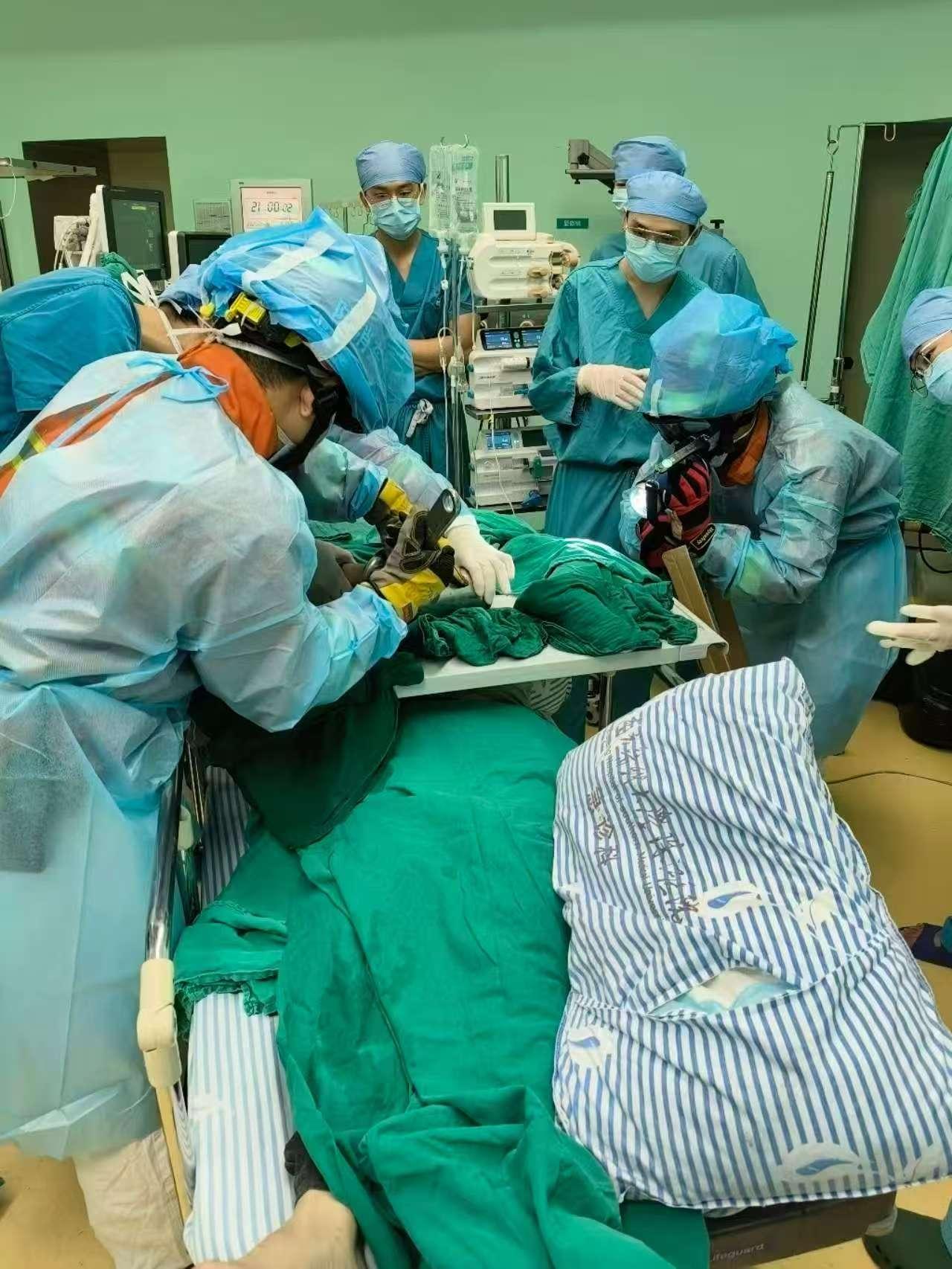 麻醉科黄子原、吴思达等医生迅速为阿彬实施插管全身麻醉及有效的止痛镇静,确保手术的顺利进行。在手术室护士郭李君、杨鹏飞等的密切配合下,蔡保塔教授主刀的手术团队立即展开修复手术。