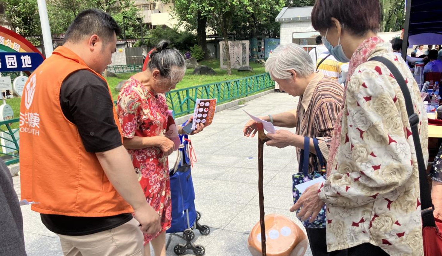 活动现场精心规划的“银龄消费体验长廊”设置了16个特色展位,涵盖健康管理、金融服务、智慧养老等多个领域。大参林医药打造的“养生茶饮吧”成为人气焦点,长者们在品尝陈皮茶、西洋参茶等养生饮品的同时,跟随专业药师学习保心操,将健康养生理念融入日常生活。社区银行设立的“智能金融角”则针对老年人需求,由工作人员一对一指导手机银行转账、养老金查询等操作,帮助银发群体跨越数字鸿沟。在智慧养老体验区,适老化智能设备引发广泛关注。