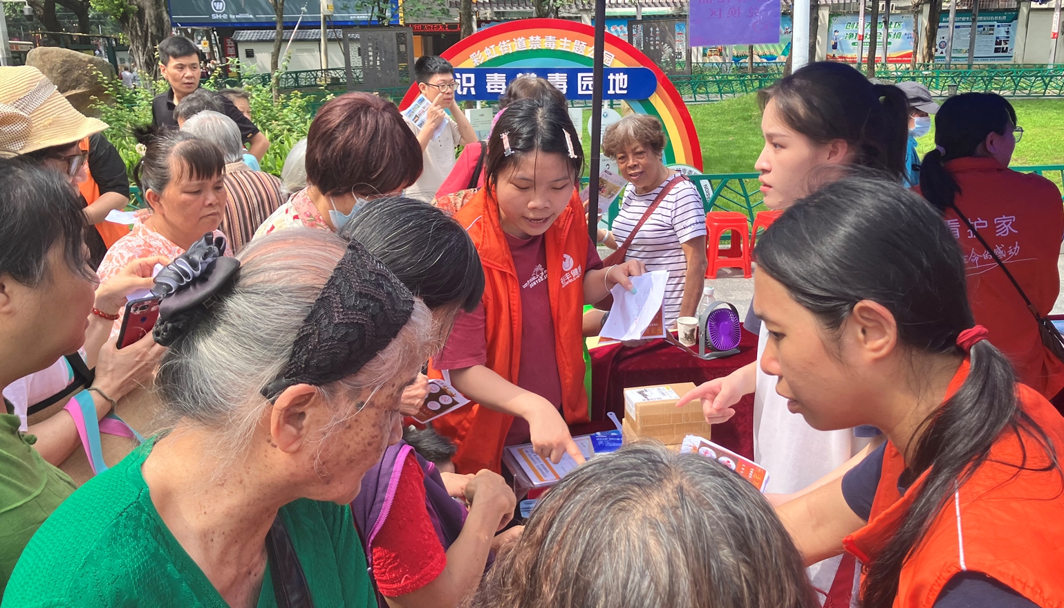 6月6日上午,广州市荔湾区彩虹街综合养老服务中心(颐康中心)联合彩虹街社工服务站、羊城晚报大健康研究院,在彩虹文化广场举办“乐活羊城・彩虹街银发集市”活动。这场聚焦银发经济的特色市集通过沉浸式体验场景,吸引了326位社区长者参与,不仅为老年人提供了便捷服务,更通过适老化产品与服务的展示,激活了银发消费新动能。