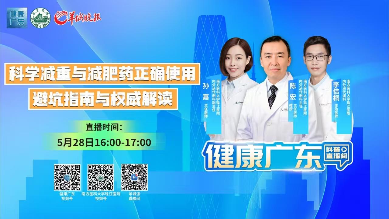 5月28日,南方医科大学珠江医院内分泌代谢科主任陈宏教授、副主任孙嘉、主治医师李佶桐做客直播间,聚焦的话题是“科学减重与减肥药正确使用——避坑指南与权威解读”,专家们详细谈到减肥药的科学使用与风险防范,结合国家最新指南和真实案例,解答大家最关心的热点问题。
