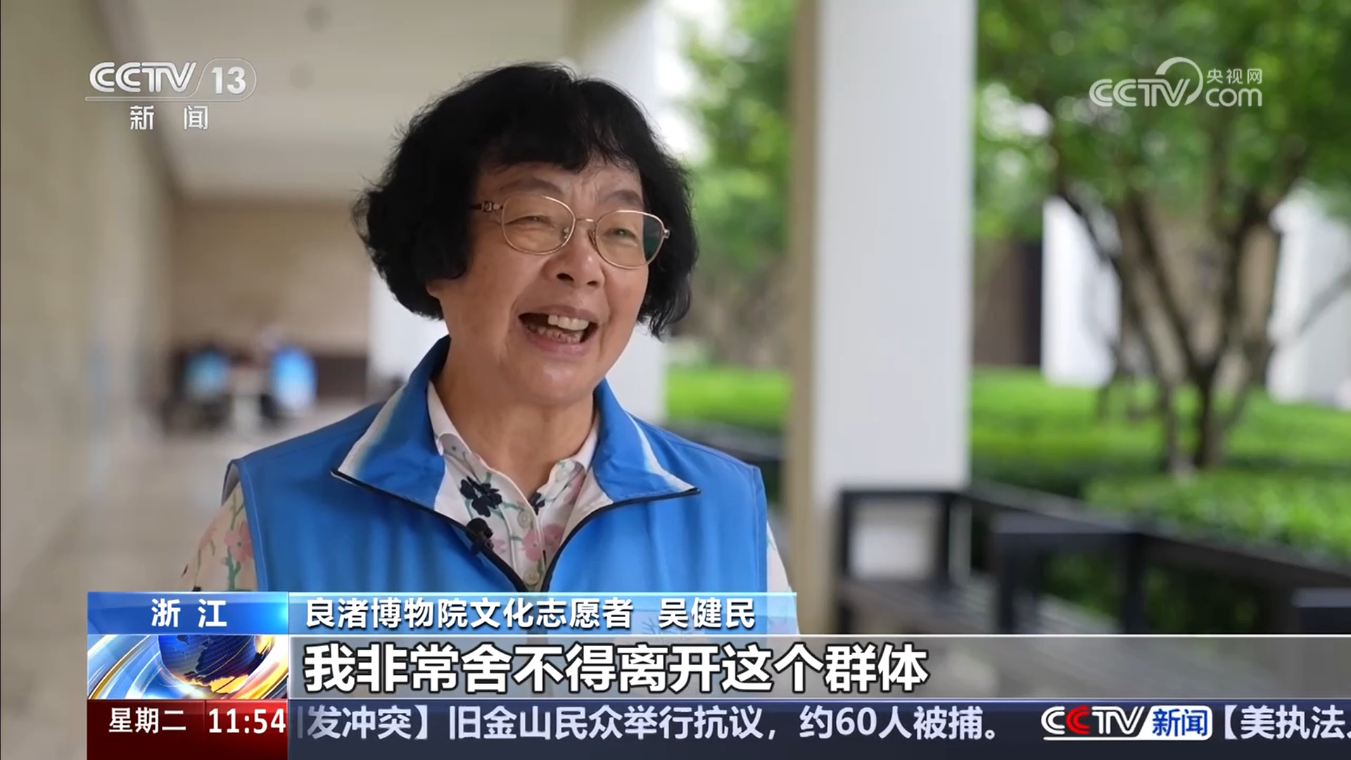 良渚博物院文化志愿者 吴健民:博物馆就像一个老年大学一样,大家在这个平台上进行交流,互相学习,非常好的一种氛围。只要我身体允许的情况下,我非常舍不得离开这个群体。