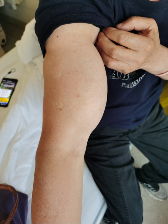 无独有偶,同病房的40岁徐先生情况相类。近期他因家中装修频繁上下楼搬运重物,右大腿肉眼可见地变粗了,起初也以为是不经意间“练出了肌肉”,可局部触感异常,没有肌肉的弹韧感,只是“一团了无生气的僵硬”。徐先生感觉不对劲,马上来了十院。