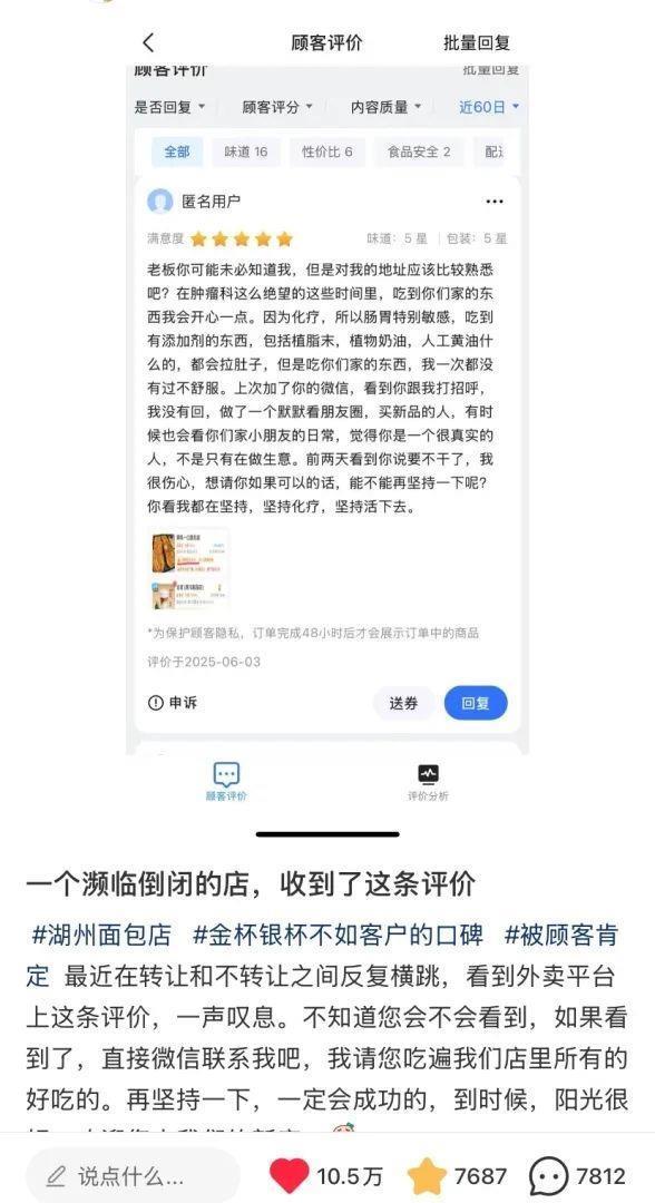 据媒体报道,浙江湖州一家面临转让的面包店因癌症患者的暖心留言,意外引发社会关注。