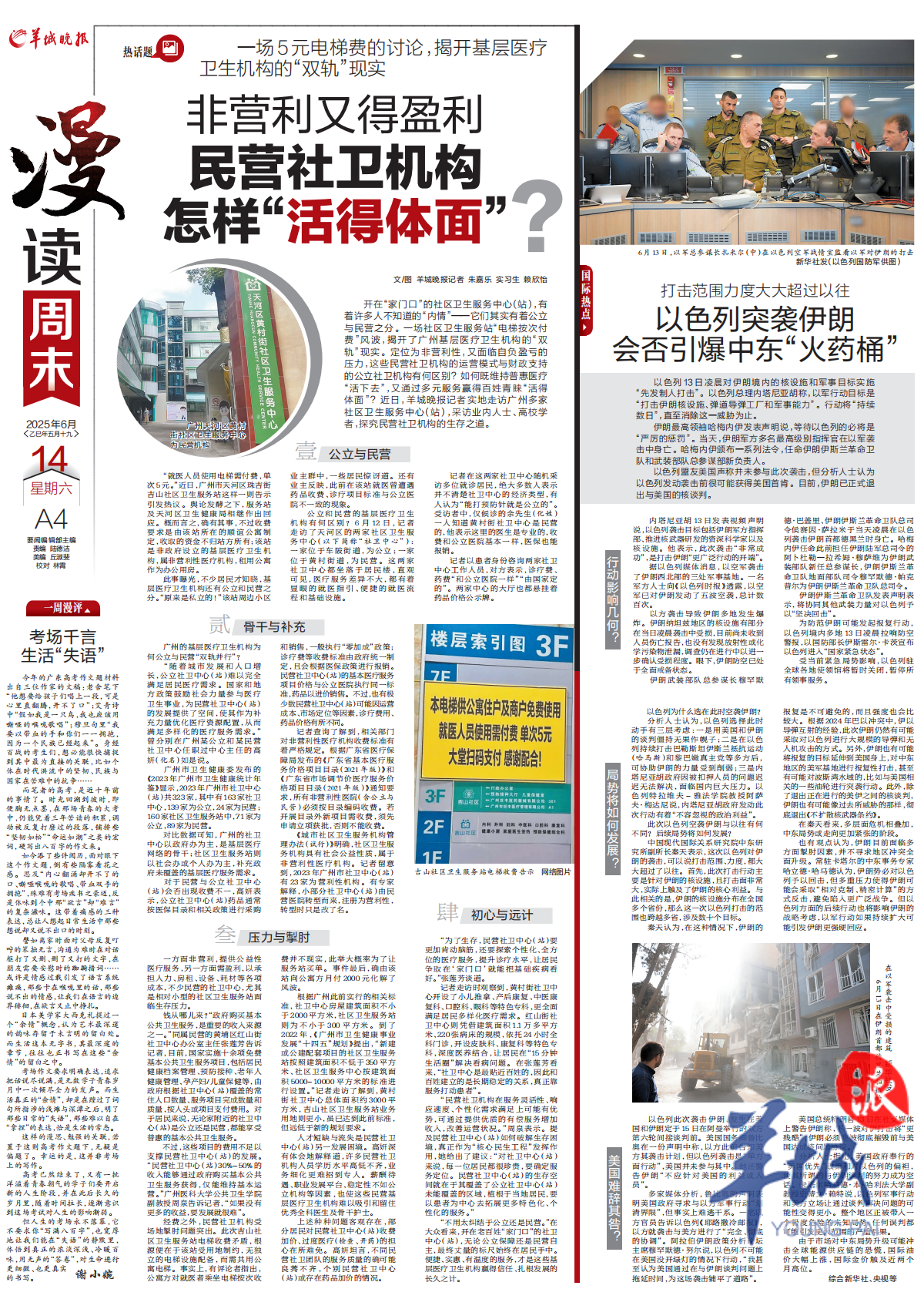 开在“家门口”的社区卫生服务中心(站),有着许多人不知道的“内情”——它们其实有着公立与民营之分。一场社区卫生服务站“电梯按次付费”风波,揭开了广州基层医疗卫生机构的“双轨”现实。定位为非营利性,又面临自负盈亏的压力,这些民营社卫机构的运营模式与财政支持的公立社卫机构有何区别?如何既维持普惠医疗“活下去”,又通过多元服务赢得百姓青睐“活得体面”?近日,羊城晚报记者实地走访广州多家社区卫生服务中心(站),采访业内人士、高校学者,探究民营社卫机构的生存之道。