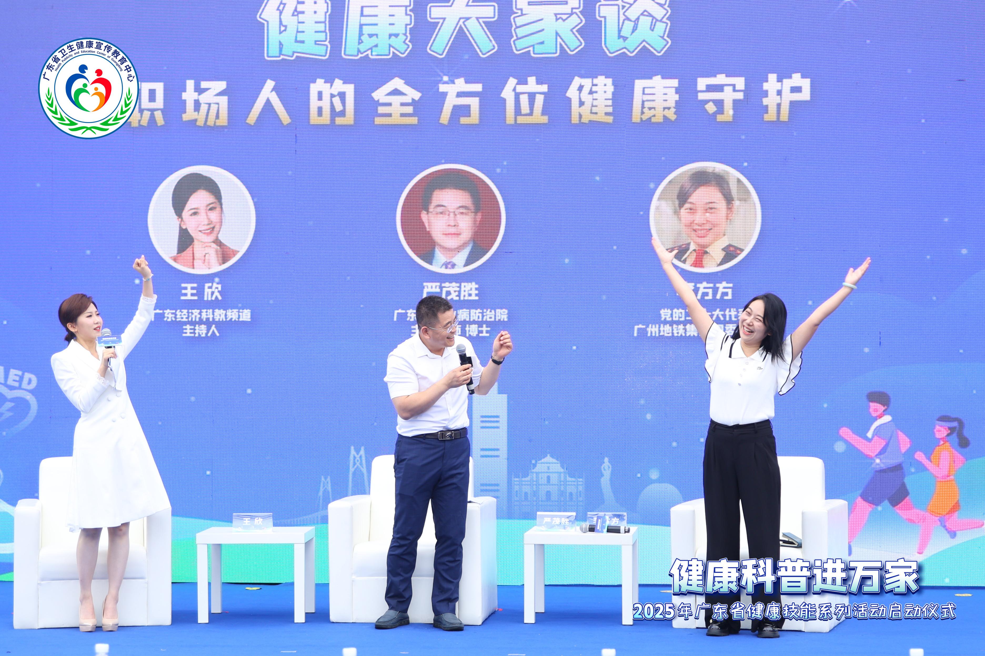在圆桌论坛上,广东省职防院严茂胜医生与地铁职工热议“久坐克星”,传授办公室微运动秘籍。