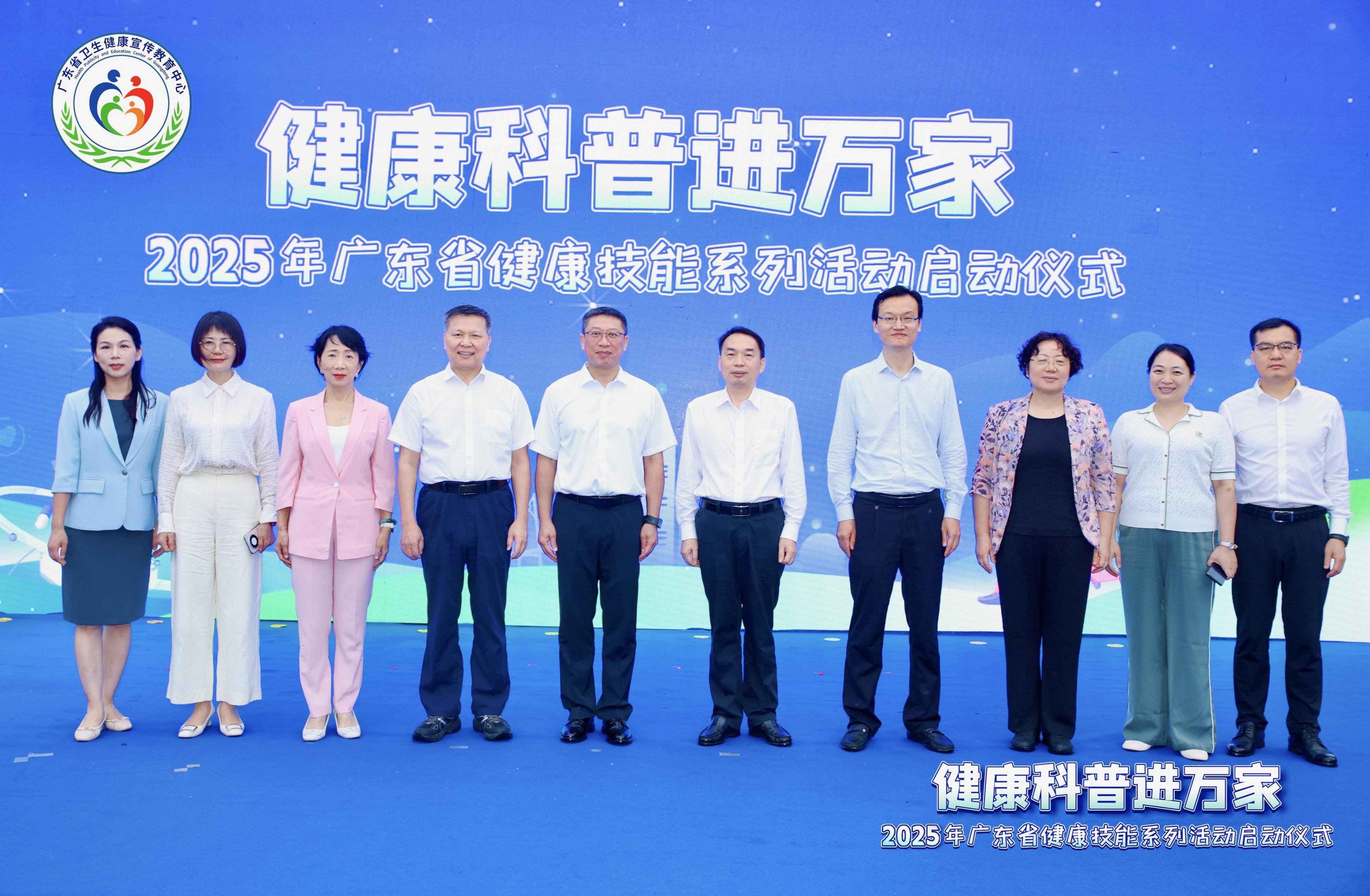 暴雨倾盆的6月17日,广州万胜广场内却暖流涌动。在广东省卫生健康委、广东省疾控局指导下,由省卫生健康宣传教育中心、省医学会联合主办的2025年广东省“健康科普进万家”健康技能系列活动正式启动。省卫生健康委副主任刘元亮、省医学会会长黄飞、省疾控局党组书记、局长宋铁等共同按下启动手印,宣告这场覆盖全省的健康科普行动拉开序幕。