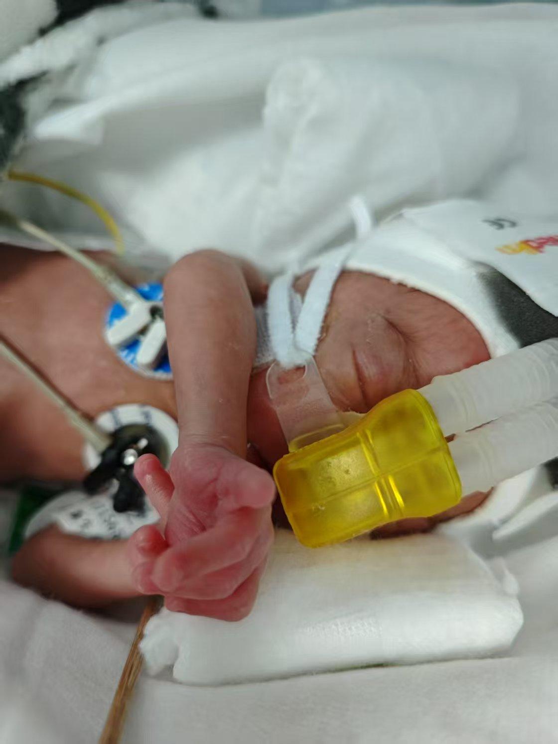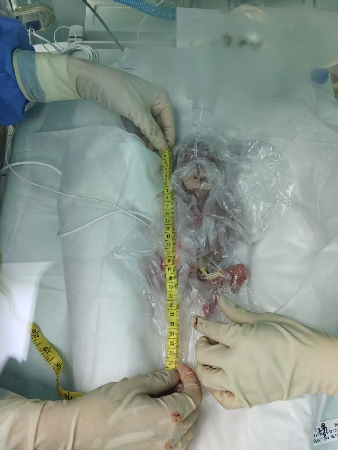 瑞瑞出生后,医护团队在立即采取保鲜膜包裹+多功能温箱的措施模拟“人工子宫”环境,避免体温流失,并采用“温和通气策略”(低压力、低潮气量)减少机械通气可能造成未成熟的肺组织的损伤,出生23天后,瑞瑞成功撤去了呼吸机。