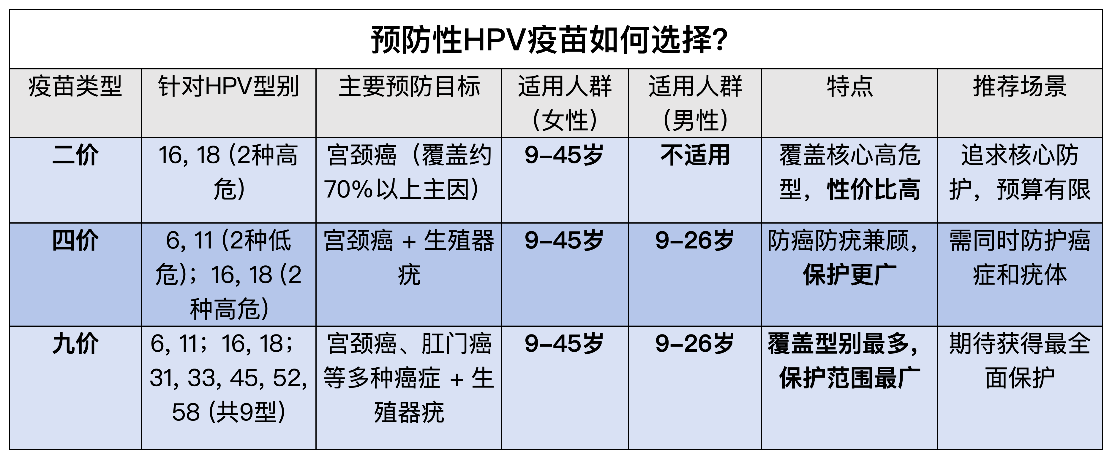 1.第一重铠甲:疫苗接种。预防性HPV疫苗能有效预防绝大多数疫苗所涵盖型别的HPV感染,显著降低相关疾病风险。目前有2价、4价和9价三种疫苗可选,适用年龄各有不同,需按需接种。