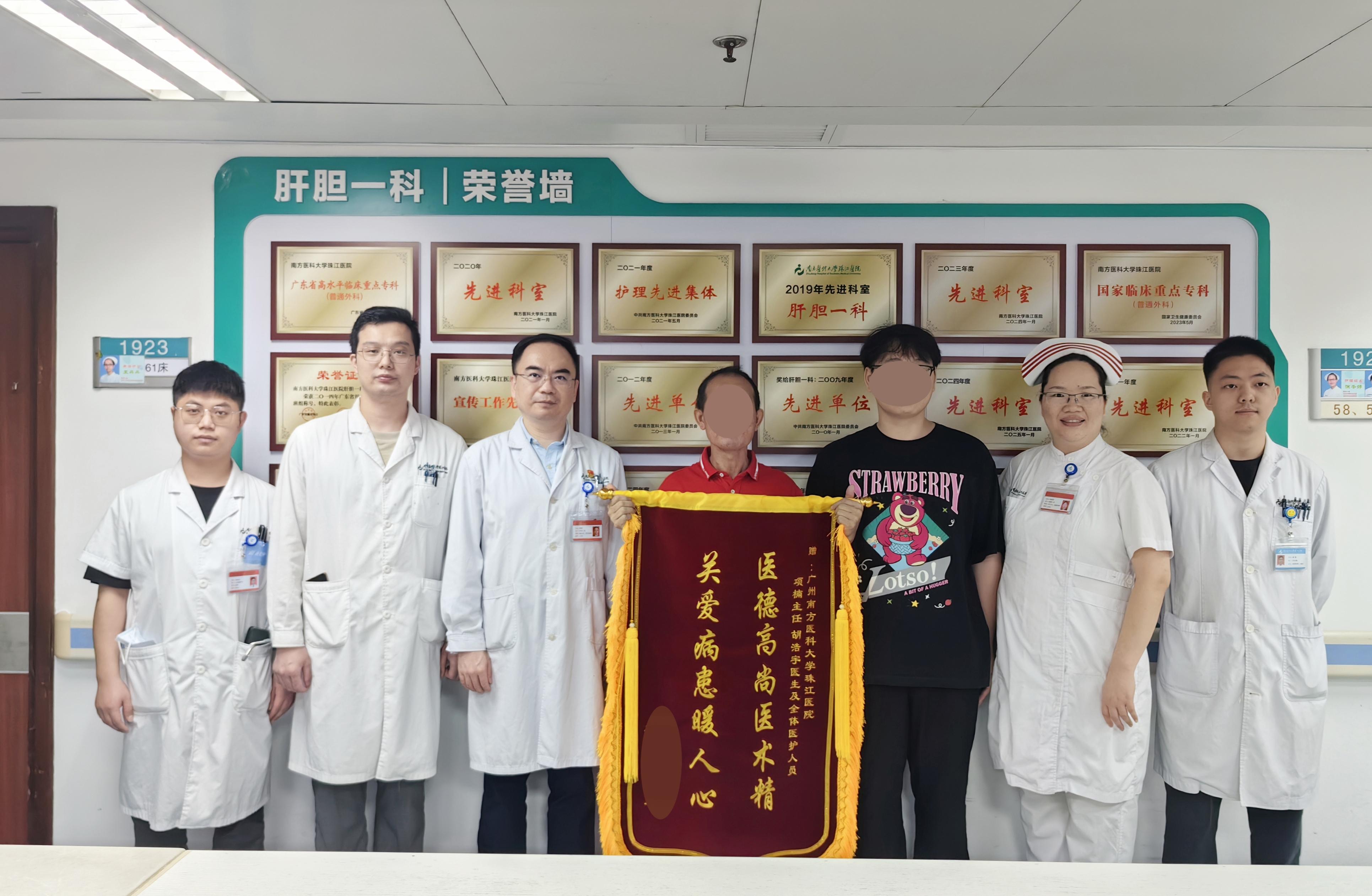 出院一个月后,患者们返回珠江医院复诊,并向项楠主任医师团队送上锦旗。“真的特别感谢项楠主任医师和整个团队,是他们给了我第二次生命。” 张姨激动地说。