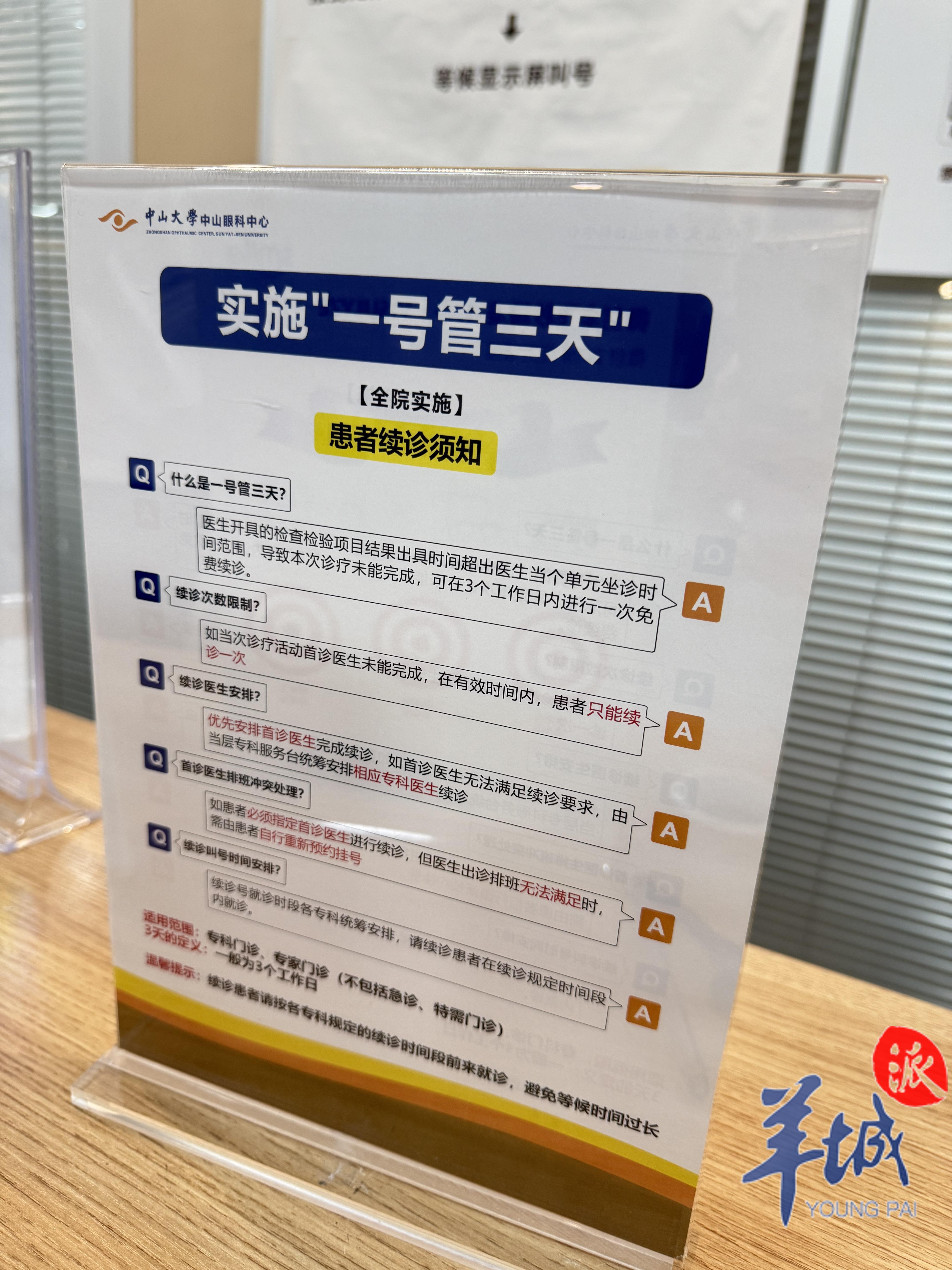 在广州医科大学附属妇女儿童医疗中心,前一天做完检查、准备拿着结果找医生复诊的患者刘女士对记者诉说了这项服务带来的便利:“以前找医生看结果要重新挂号,甚至要多等一周。现在一号管三天会节约不少时间,方便很多。”邓女士则提到,不用重复挂号可以减少时间和费用上的支出,“直接拿着结果找医生看效率也提高不少。”