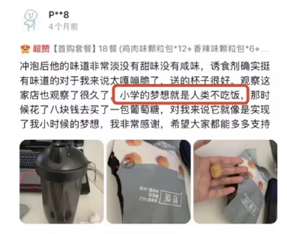 近期,某款被冠以 “人粮” 之称的代餐产品在网络平台持续走热,月销量高达2.6万件,累计售卖额达到40万元,其宣称 “两勺粉末加水摇匀即可解决一顿饭”,凭借便捷性引发广泛热议。