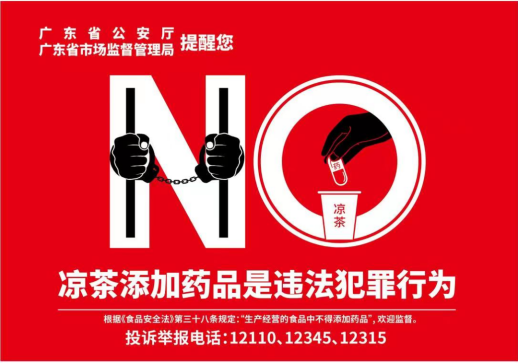 3.积极举报:一旦发现凉茶铺存在非法添加西药或其他可疑经营行为,请及时拨打12110、12345、12315等投诉举报。